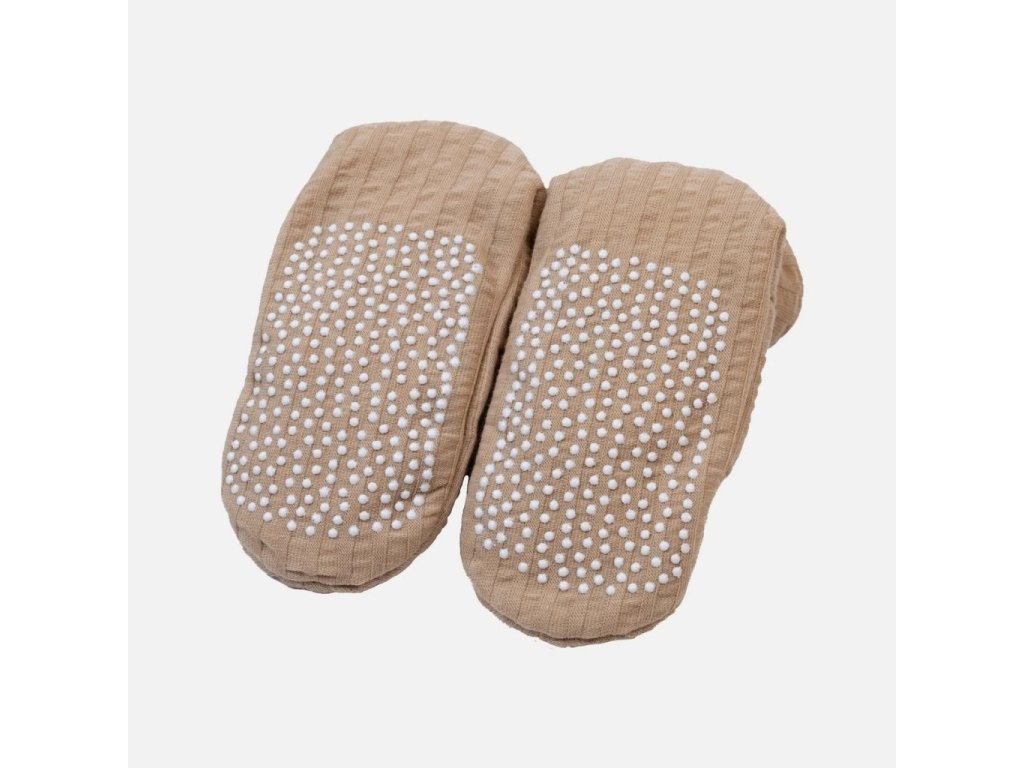 Ve velikosti 6 - 12 měsíců je jejich spodní strana opatřena speciální protiskluzovou úpravou. Díky zvrásněným pruhům mají capáčky mačkaný vzhled.
