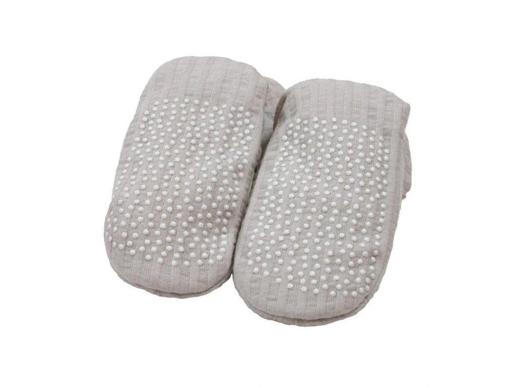 Ve velikosti 6 - 12 měsíců je jejich spodní strana opatřena speciální protiskluzovou úpravou. Díky zvrásněným pruhům mají capáčky mačkaný vzhled.