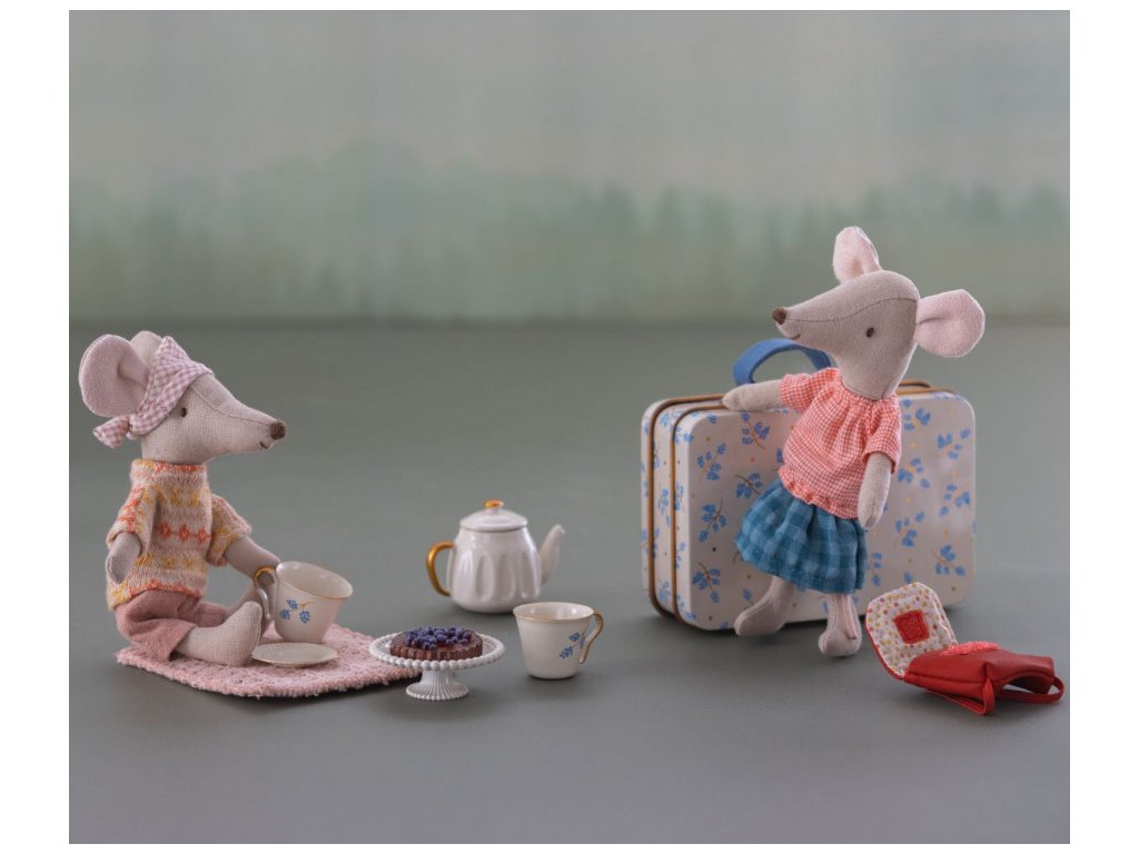 V tomto nádherném kufříku se nachází vše potřebné k odpolední siestě, kterou mají myšky tak rády. Sada obsahuje čajovou konvici, 2 hrníčky s podšálky a něco dobrého na zub.