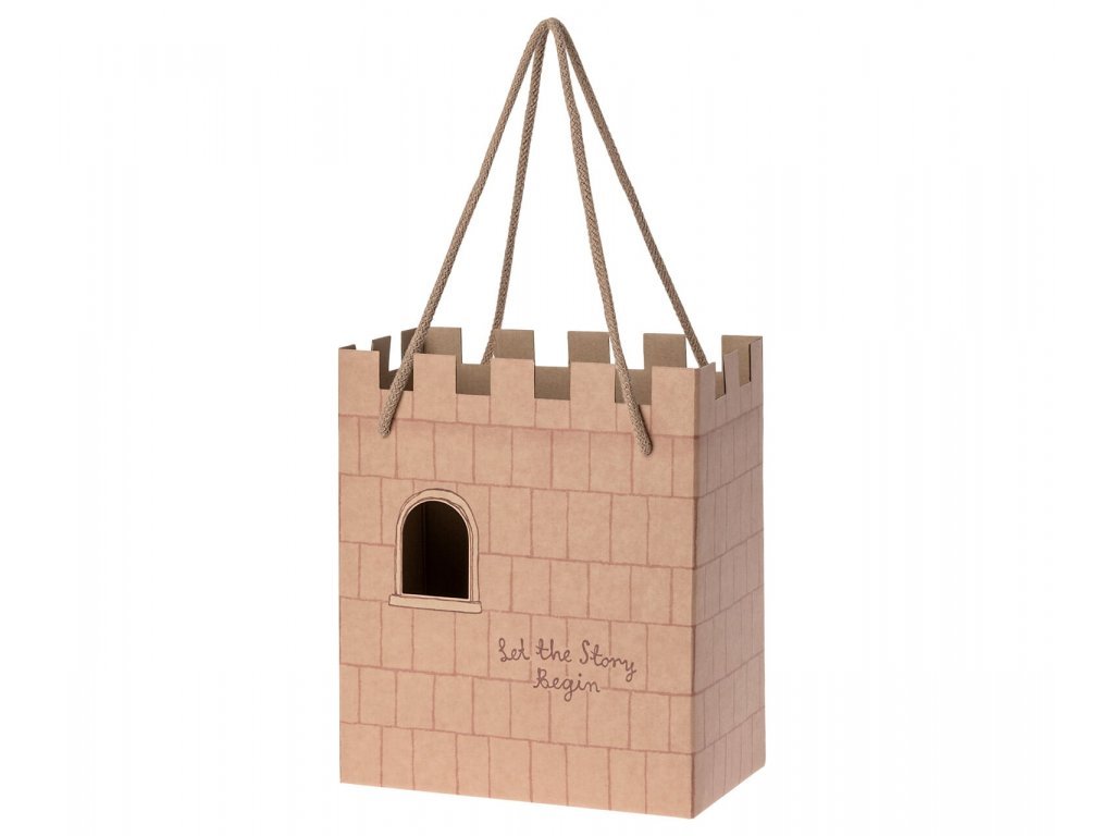 Dárková taška ve tvaru hradu, která se dá využít nejen jako taška, ale také jako hrad.