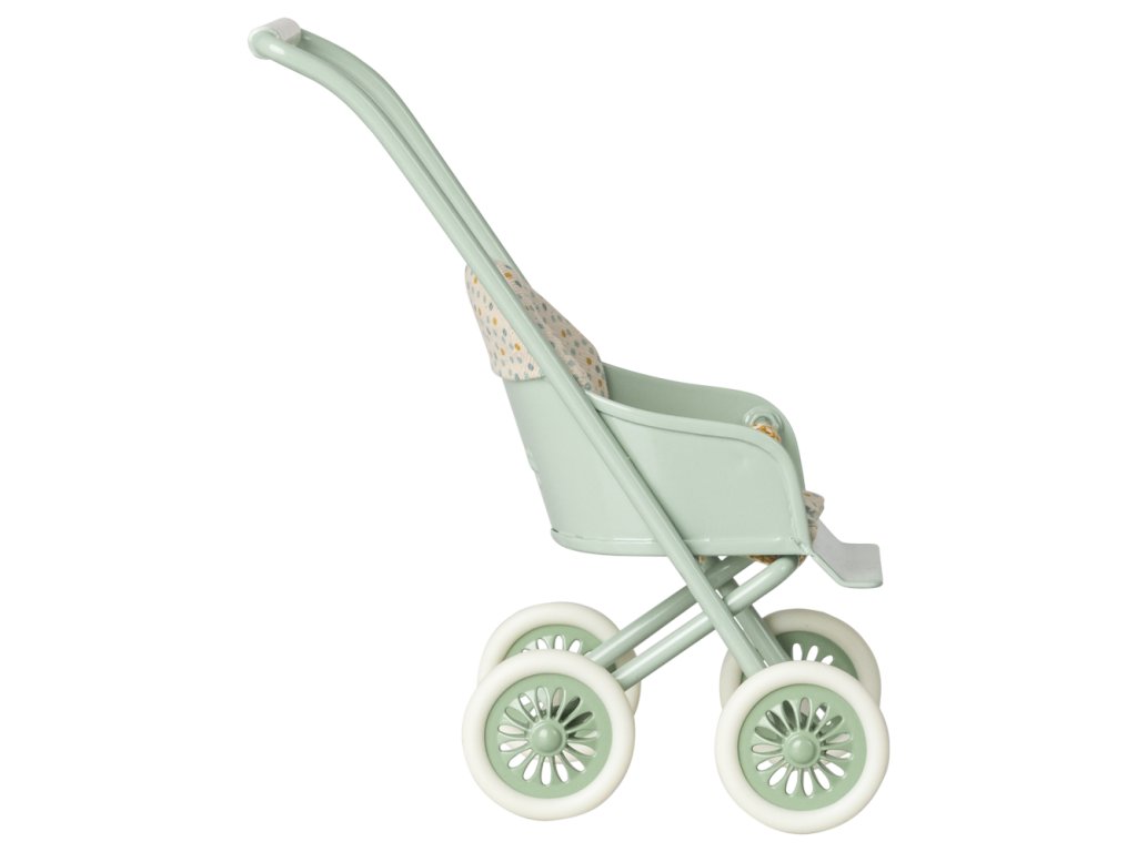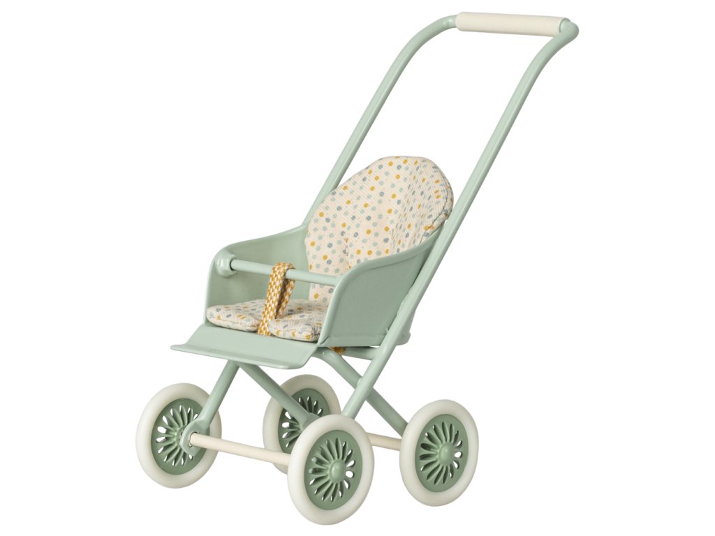 Krásný kočárek pro myšky a zajíčky od značky Maileg. Kovová část má na bocích vyražené detaily. Měkké povlečení je ideální pro zdřímnutí. Tento unikátní produkt je částečně ručně vyráběný, proto může docházet k odchylkám.
