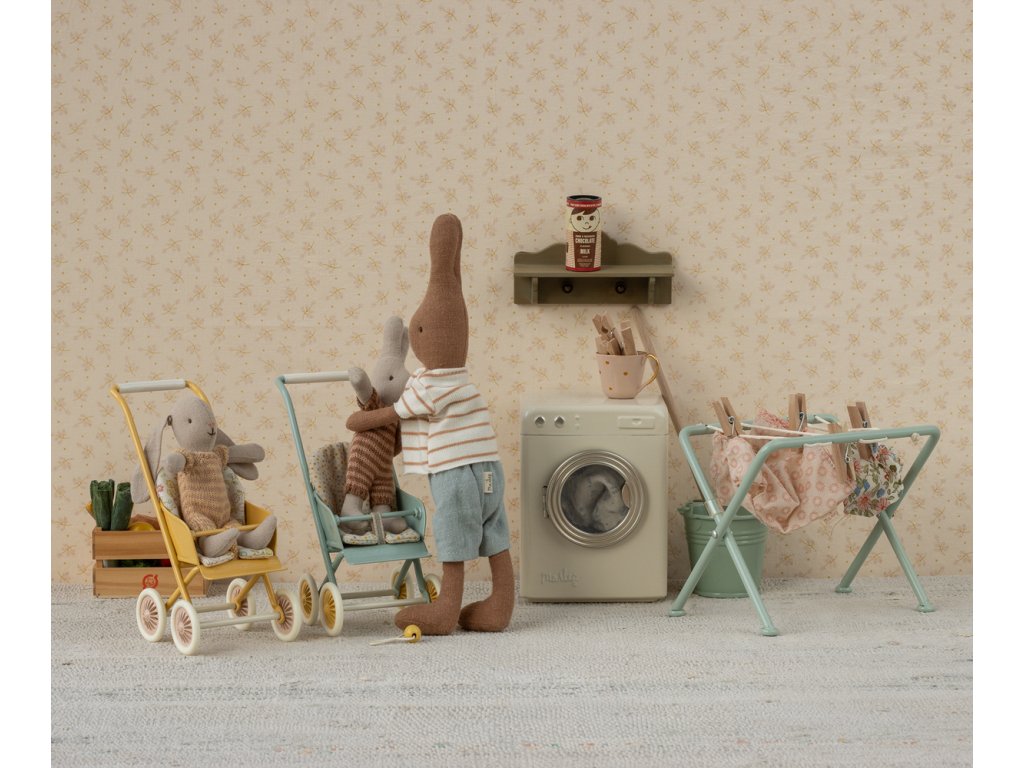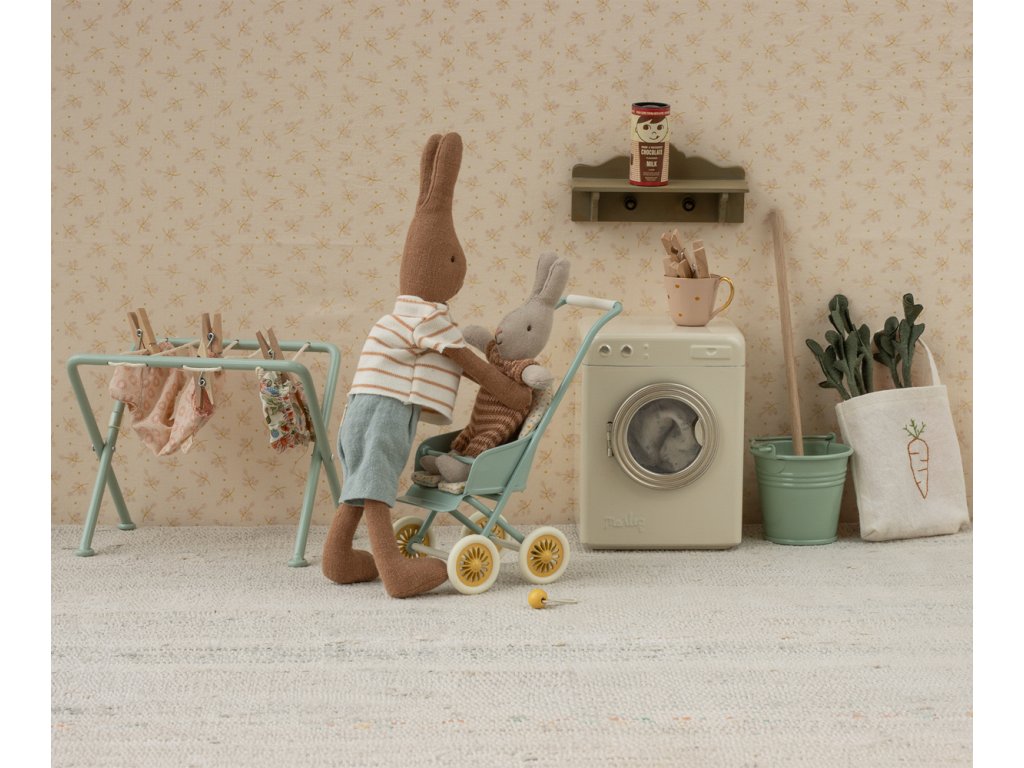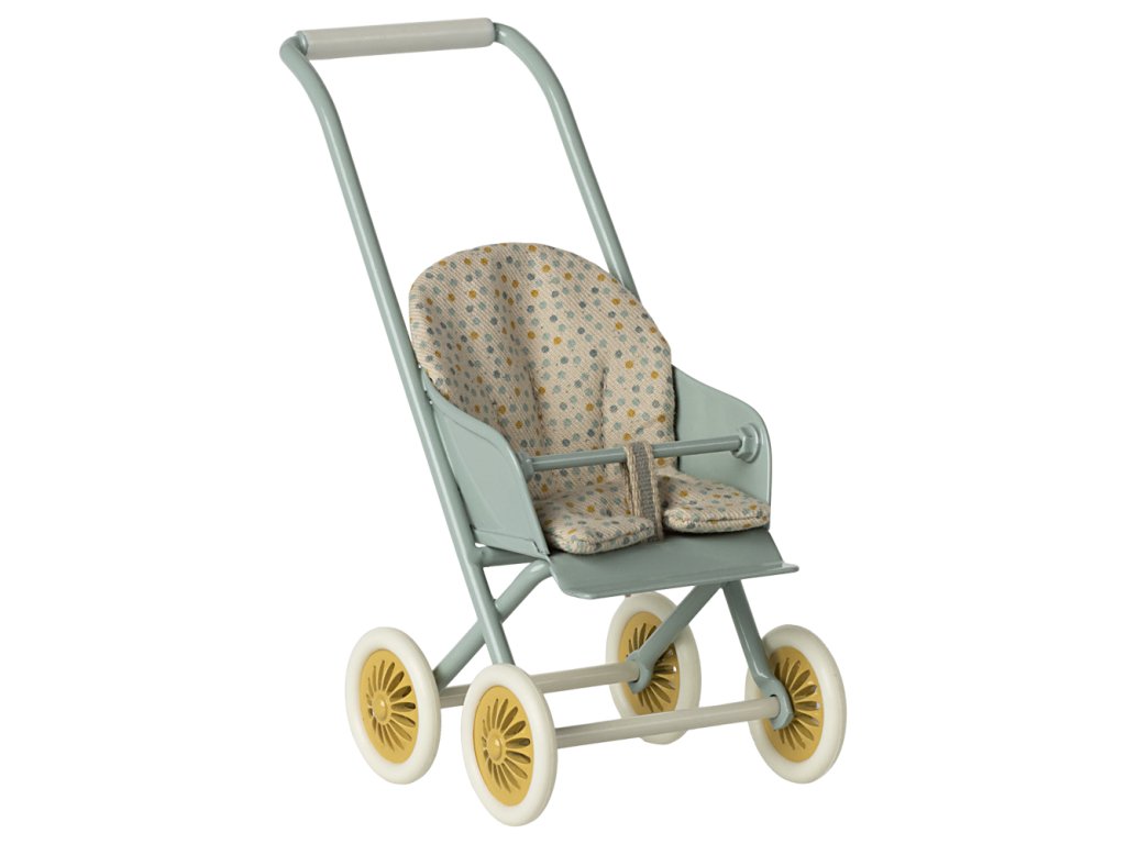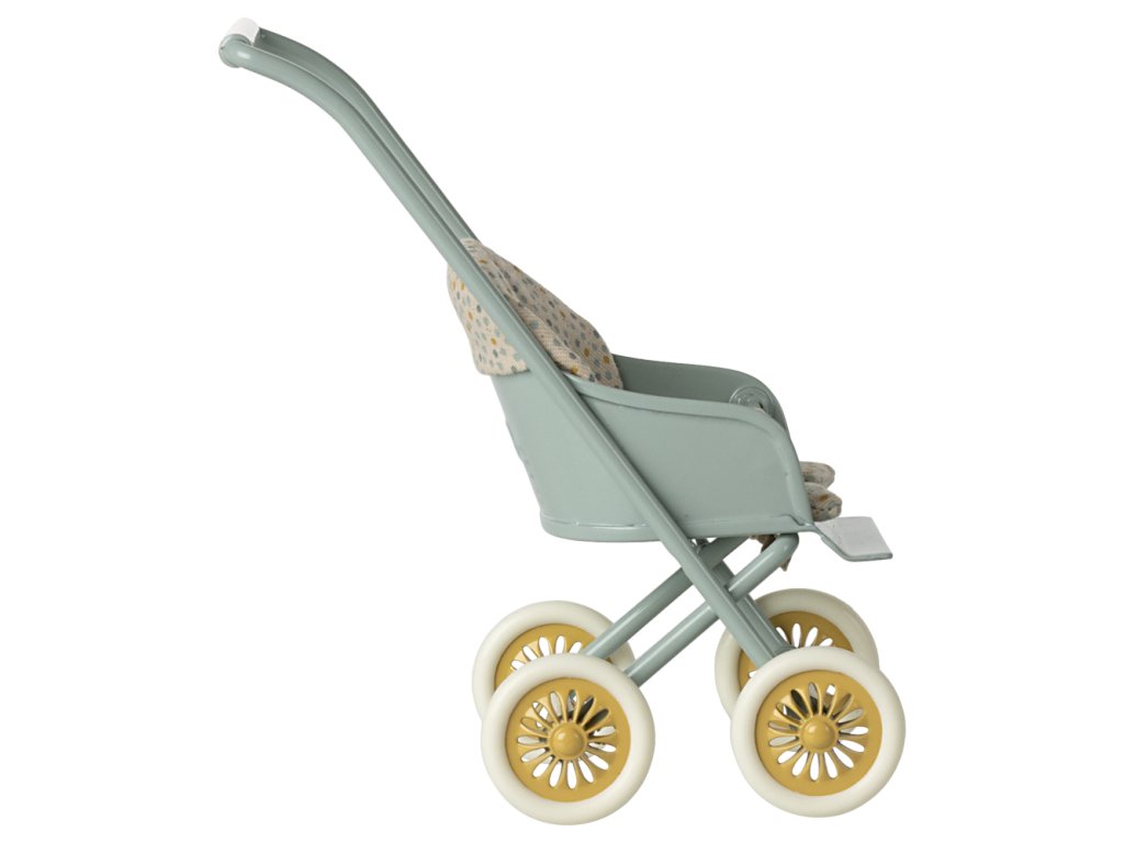 Krásný kočárek pro myšky a zajíčky od značky Maileg. Kovová část má na bocích vyražené detaily. Měkké povlečení je ideální pro zdřímnutí. Tento unikátní produkt je částečně ručně vyráběný, proto může docházet k odchylkám.