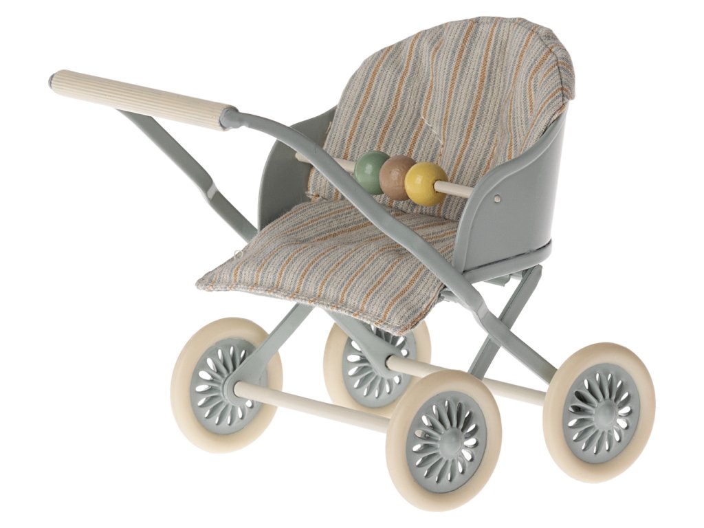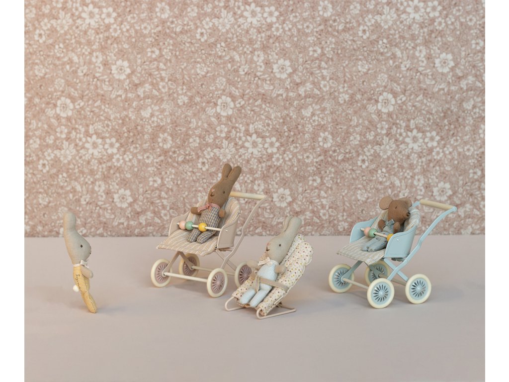 Krásný kočárek pro myšky a zajíčky od značky Maileg. Kovová část má na bocích vyražené detaily. Měkké povlečení je ideální pro zdřímnutí. Tento unikátní produkt je částečně ručně vyráběný, proto může docházet k odchylkám.