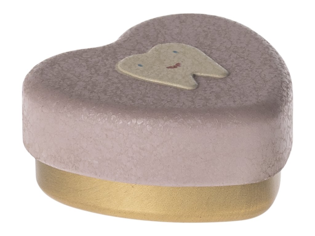 Tato roztomilá krabička je ideálním místem pro uložení malých mléčných zoubků dítěte. Jedná se o kovové srdce s krásným prolisem zoubku.