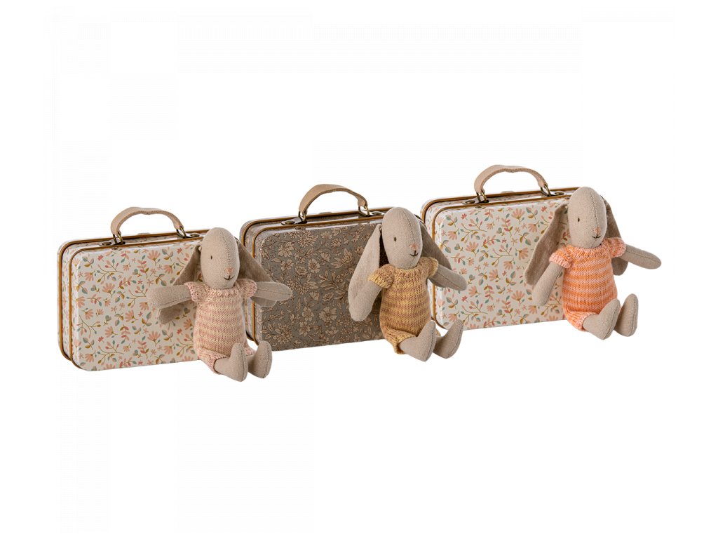 Králíček ve velikosti micro - 16 cm v plechovém kufříku - 7 x 11 cm. Na výběr ze tří druhů králíčků, kufřík pro každého králíčka viz foto.