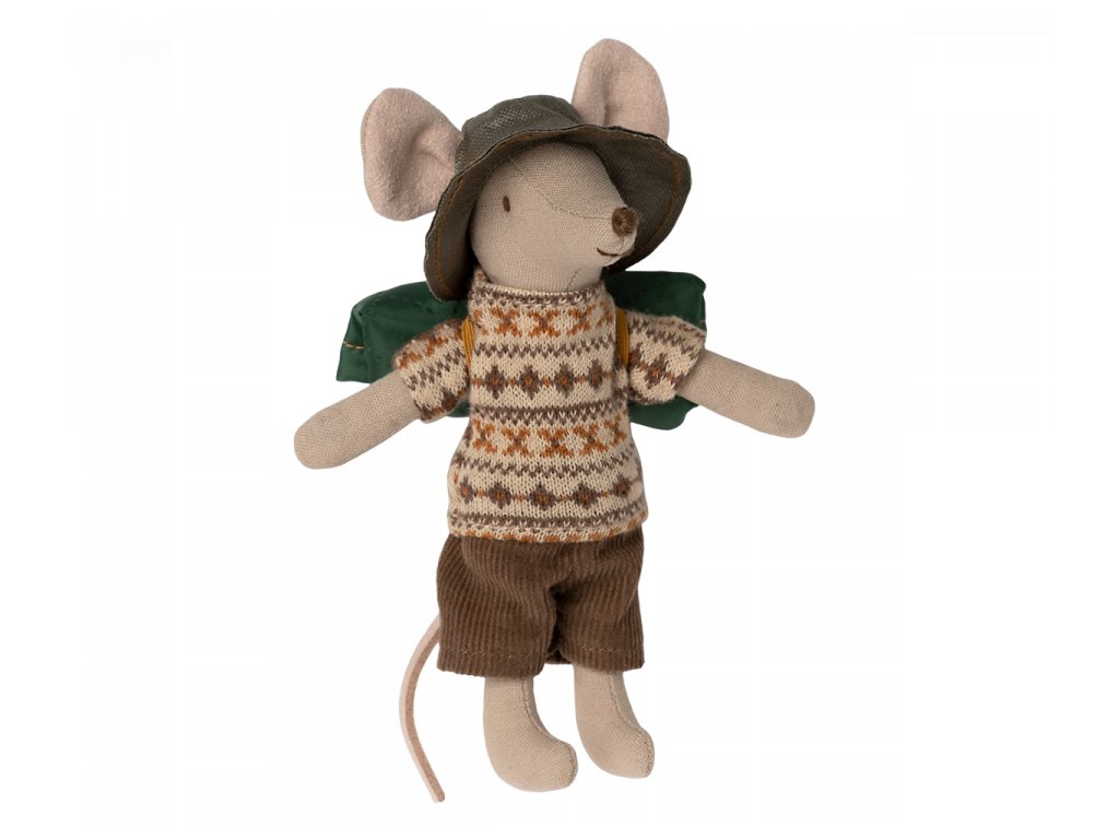 Myšák turista je plně vybavený na pořádný výšlap, na zádech má srolovaný spacák, takže přespávačka pod širákem není žádný problém! V ručičkách má magnety, takže může cokoli přenášet.