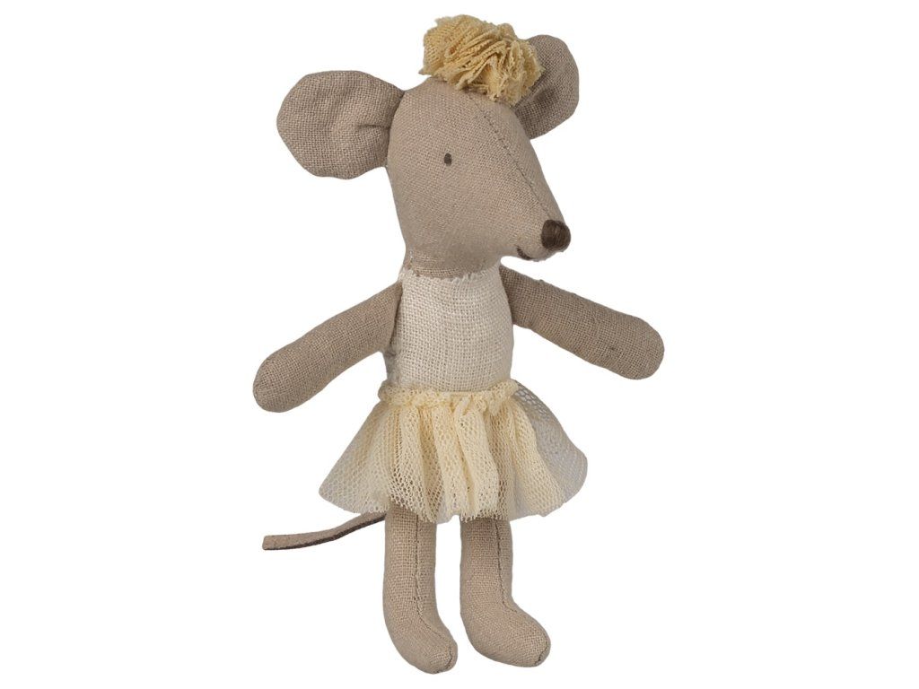 Malá myší sestřička oblečená jako půvabná baletka.