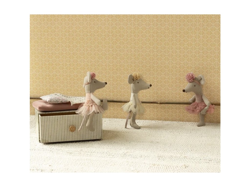 Tato malá sestra myš je baletka a má na sobě krásnou růžovou tutu sukýnku připravenou na hodiny tance.