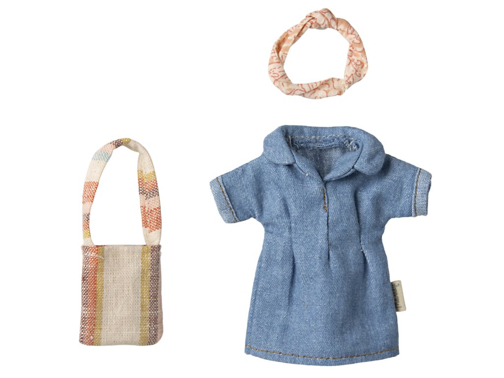 Maileg - Oblečení pro mamku myšku - džínové šaty a taška