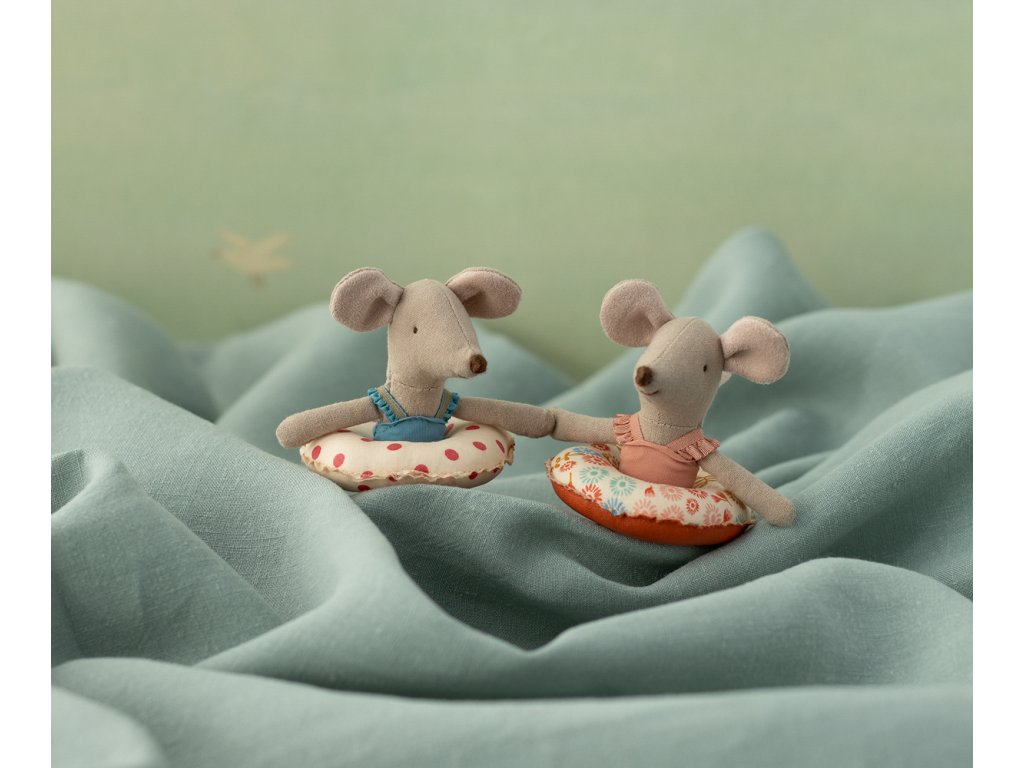 Maileg - Plážová myška s nafukovacím kruhem - malá sestra - Red dot