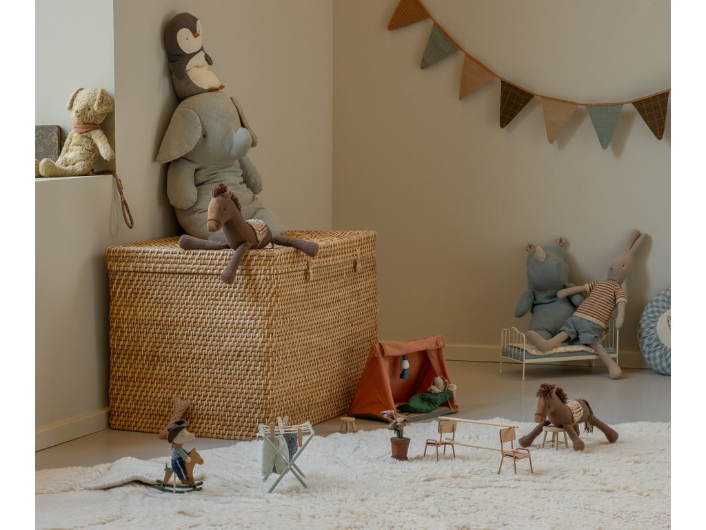 Nyní můžete mít svého vlastního Maileg poníka, kterého budete milovat a starat se o něj. Poník je vyroben z hnědého manšestru, s černým ocasem a hřívou. Poník má krásné pletené sedlo v klasickém Maileg designu.