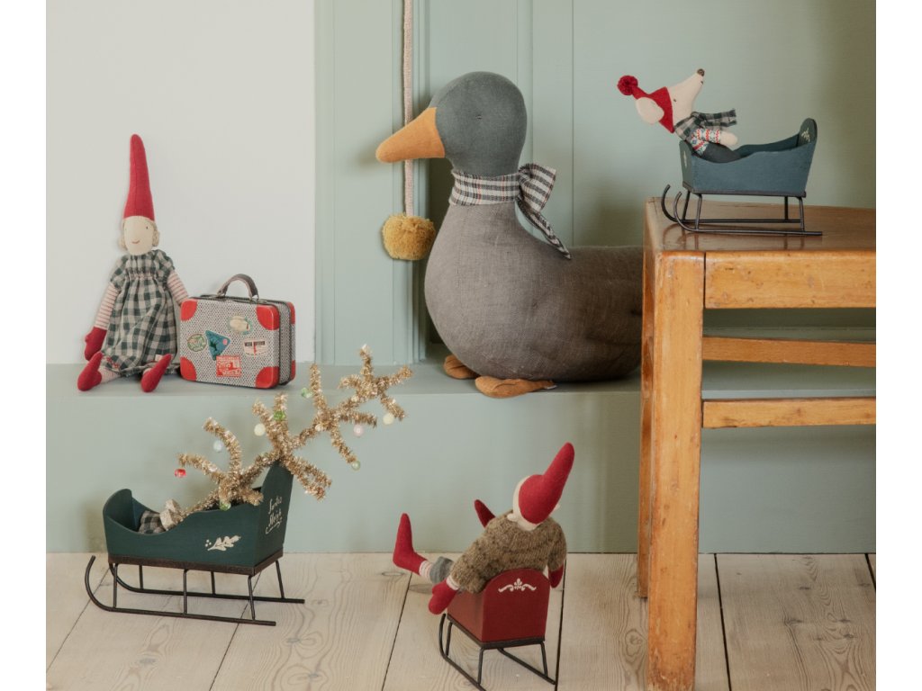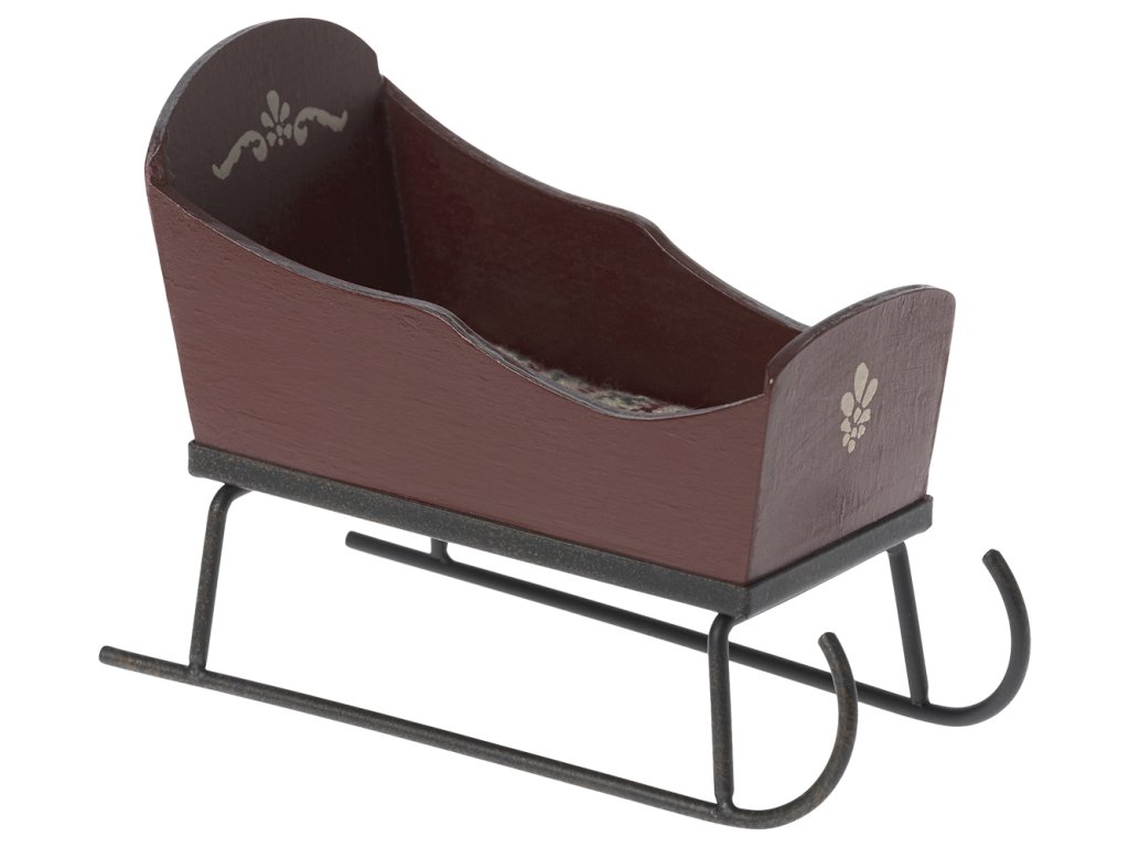 Krásné sáně s měkkou matrací, které udrží cestující v teple a pohodlí během jízdy. Tyto sáně dokonale padnou nejmenším kamarádům a myším. Má krásné ručně malované detaily.