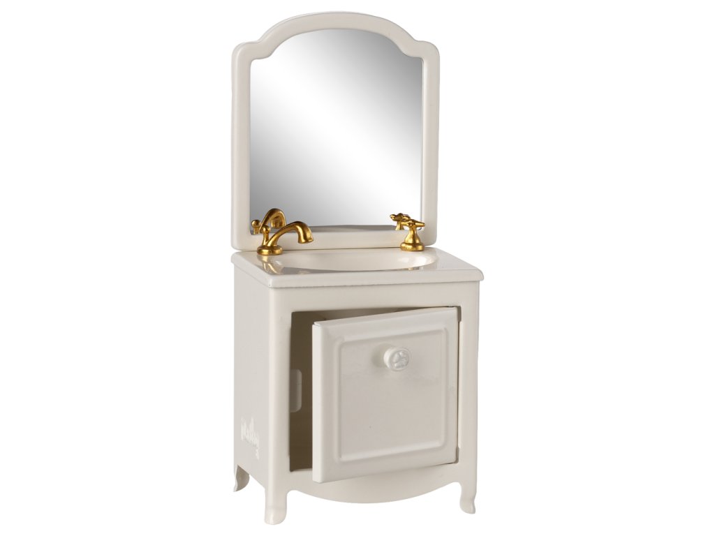 Maileg - Skříňka s umyvadlem a zrcadlem - Off white