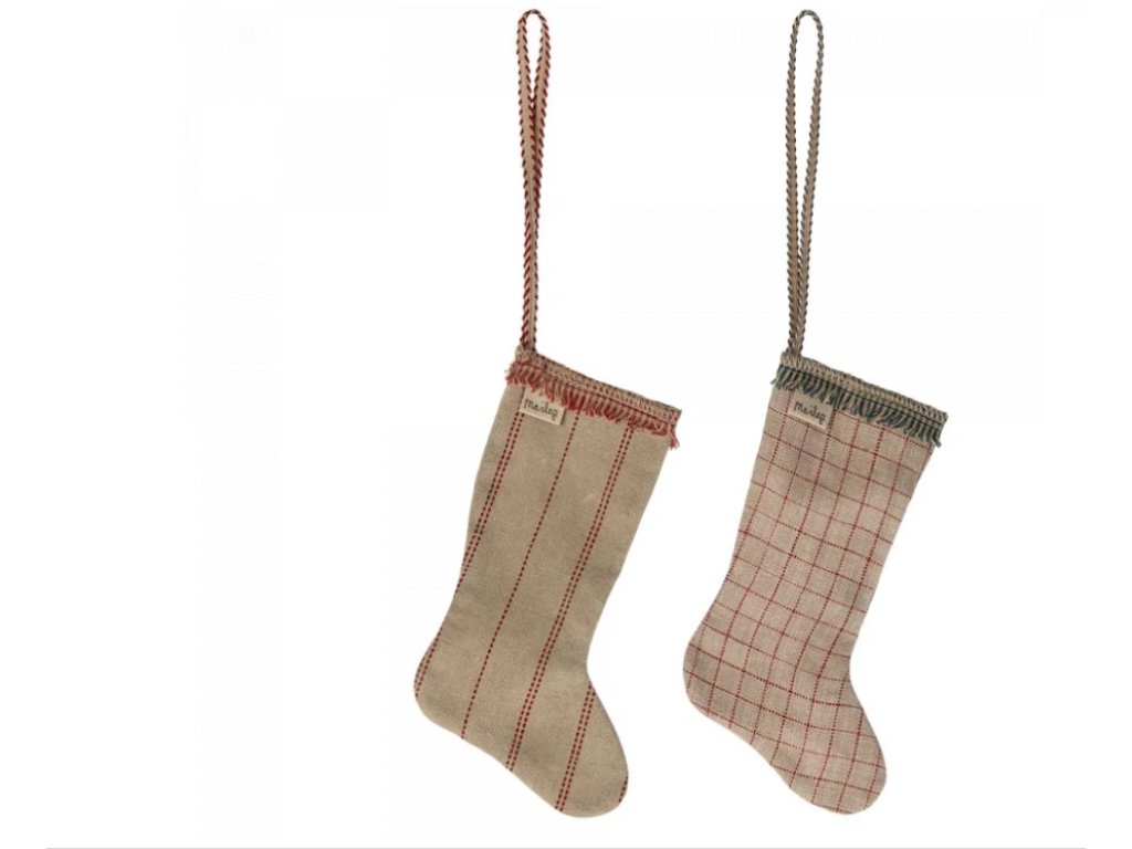 Látková ozdoba vánoční punčocha s ručně vyšívanými detaily. Skvěle se hodí na větev nebo na vánoční stromek i jako dekorace na balíček.