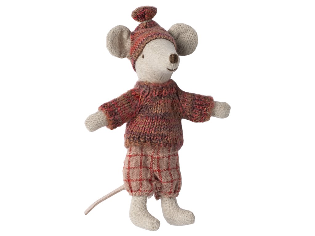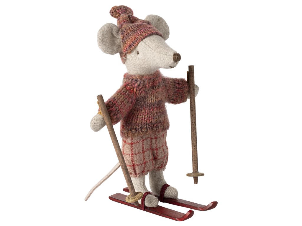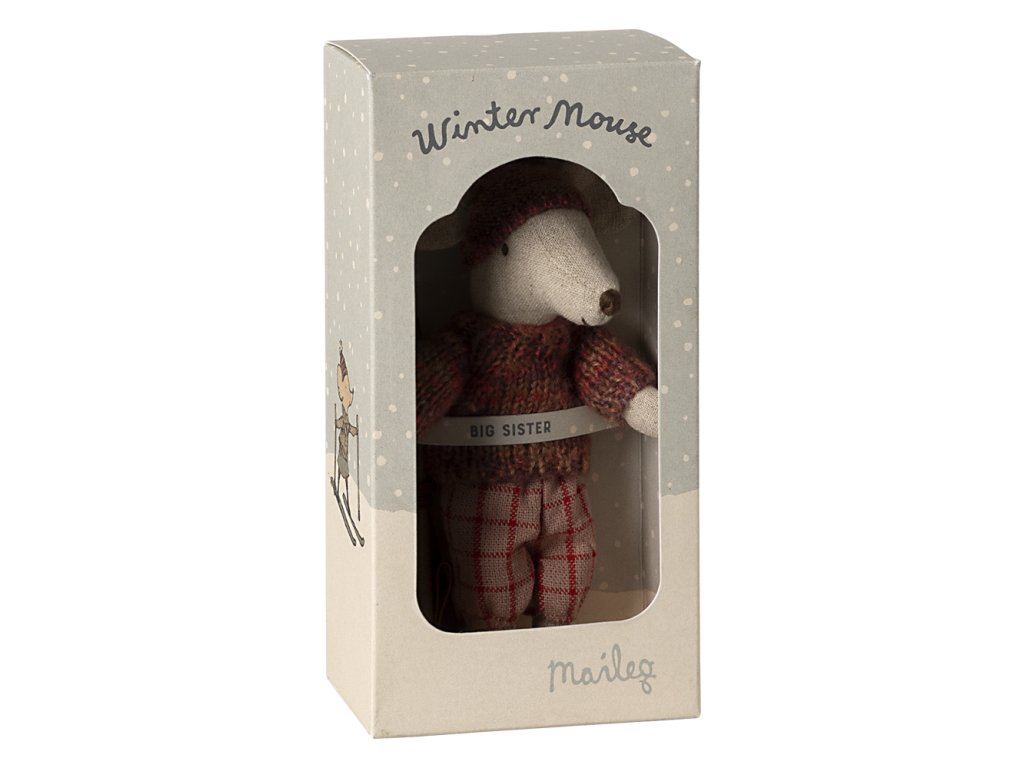 Sestřička myška má moc ráda zimní sporty, tak si vyjela na lyže a vzala si na sebe krásný pletený svetr .