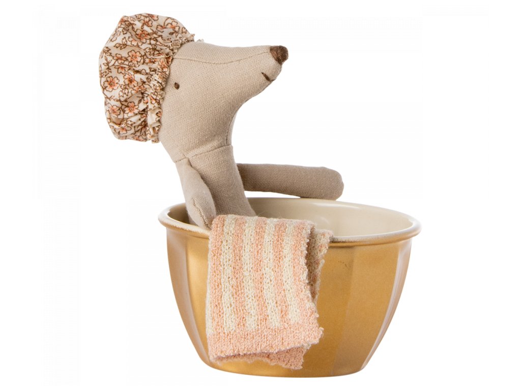 Jako všichni ostatní i tato myš miluje trávit hodiny v teplé vodě v lázních. Tato herní sada obsahuje zlatou vanu, myš a ručník.