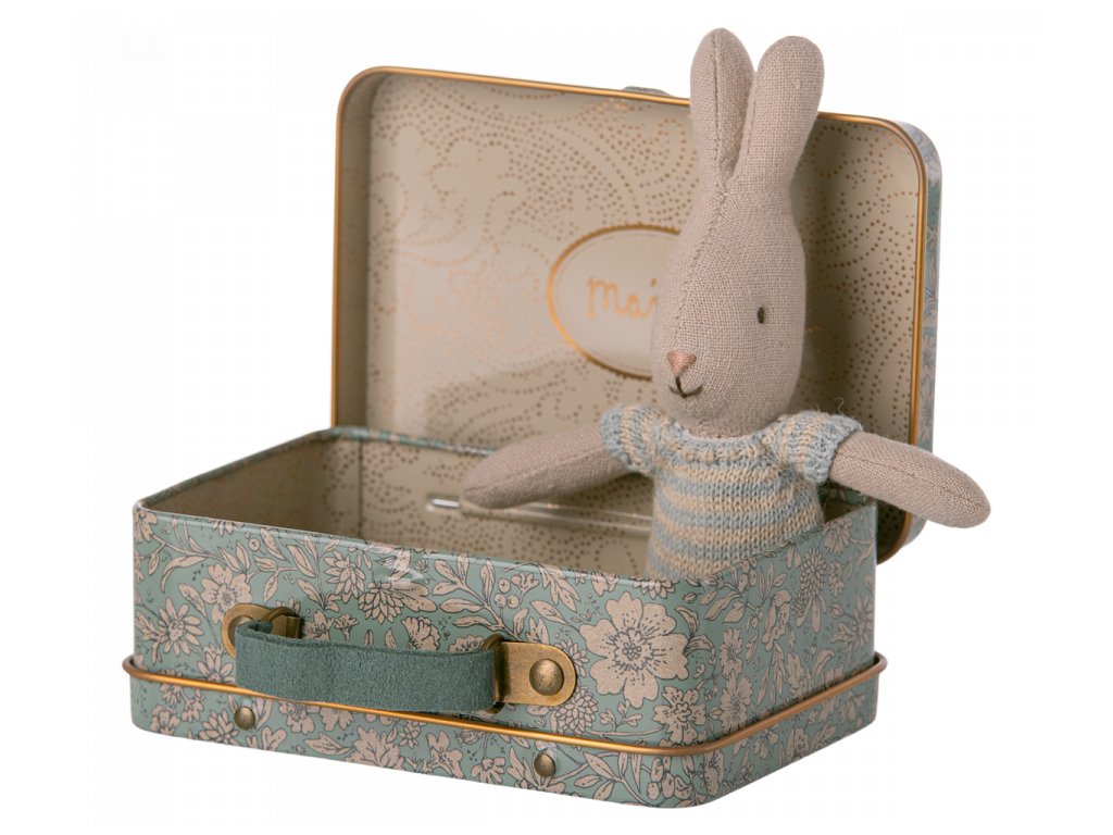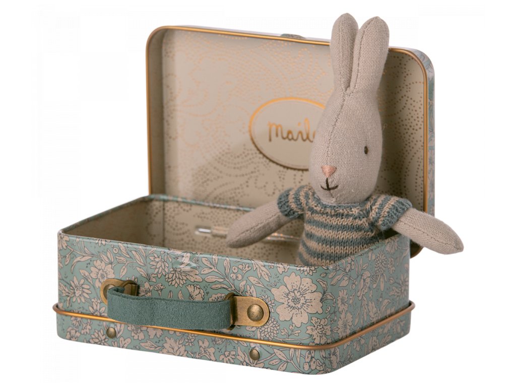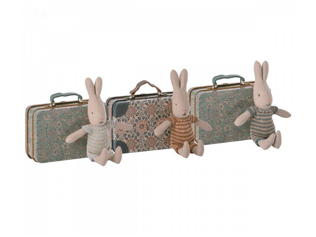 Zajíček ve velikosti micro - 16 cm v plechovém kufříku - 7 x 11 cm. Na výběr ze tří druhů králíčků, kufřík pro každého králíčka viz foto.
