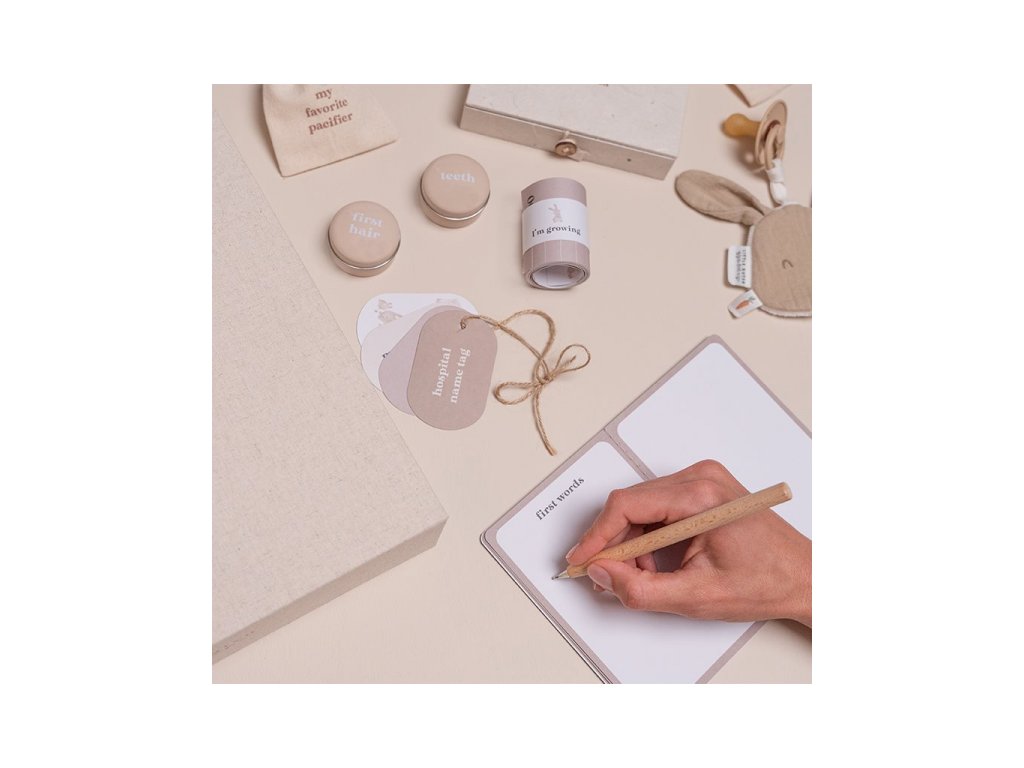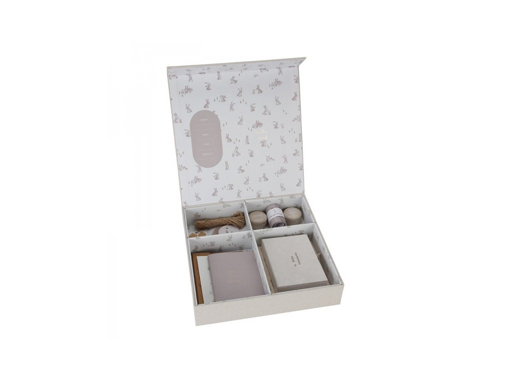 Memory box je určen pro ukládání vzpomínek na důležité milníky v životě vašeho miminka. Box obsahuje pomůcky a doplňky pro přehledné a bezpečné uchování prvních vlásků, zoubků, otisků nožičky apod. Box je součástí designové kolekce oblečení, textilu a doplňků Little Dutch Baby Bunny. Rozměry: 30 x 6 x 30 cm