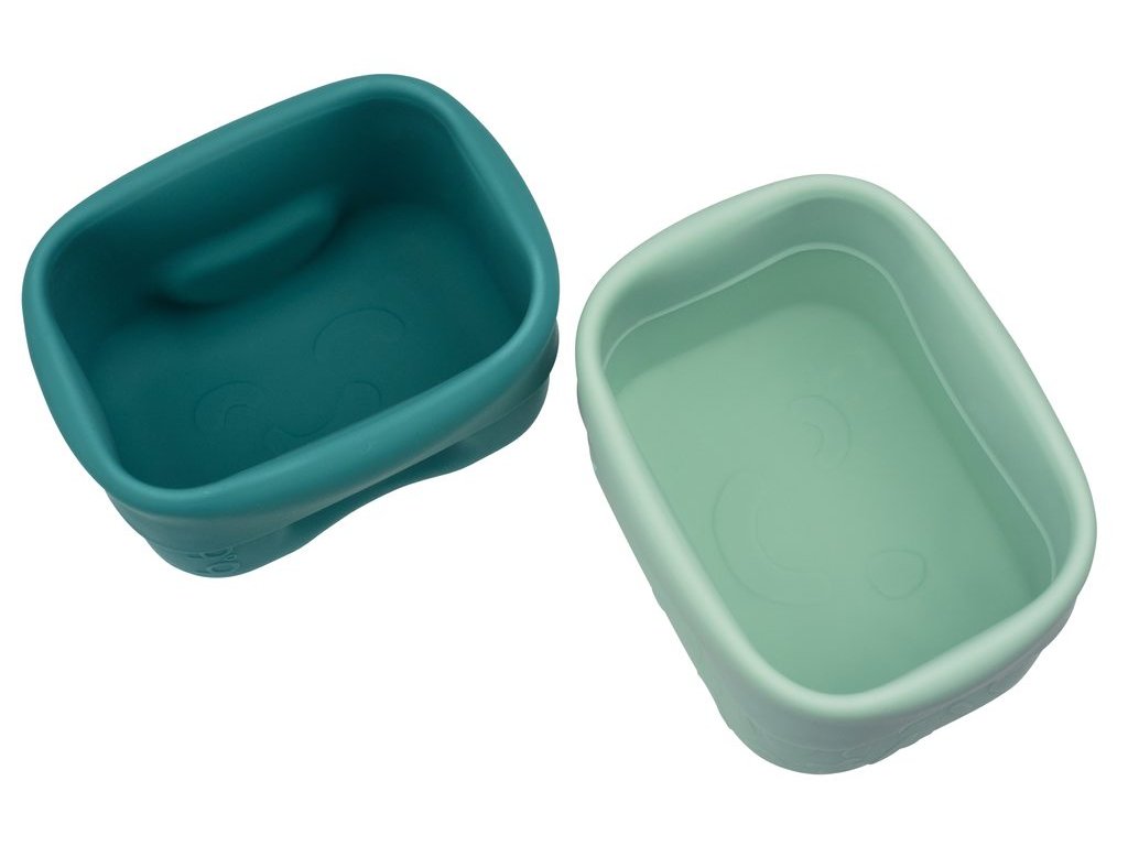 Každé balení obsahuje dva kelímky, a to základnu a víčko. Tyto víceúčelové silikonové krabičky na svačinu lze používat i samostatně; jako kelímek a víčko na svačinu nebo jako formičky na pečení. Silikonové kelímky mohou být používány v plné velikosti nebo složené a jsou ideální pro oddělování a ukládání potravin velikosti sousta nebo oblíbených dipů.