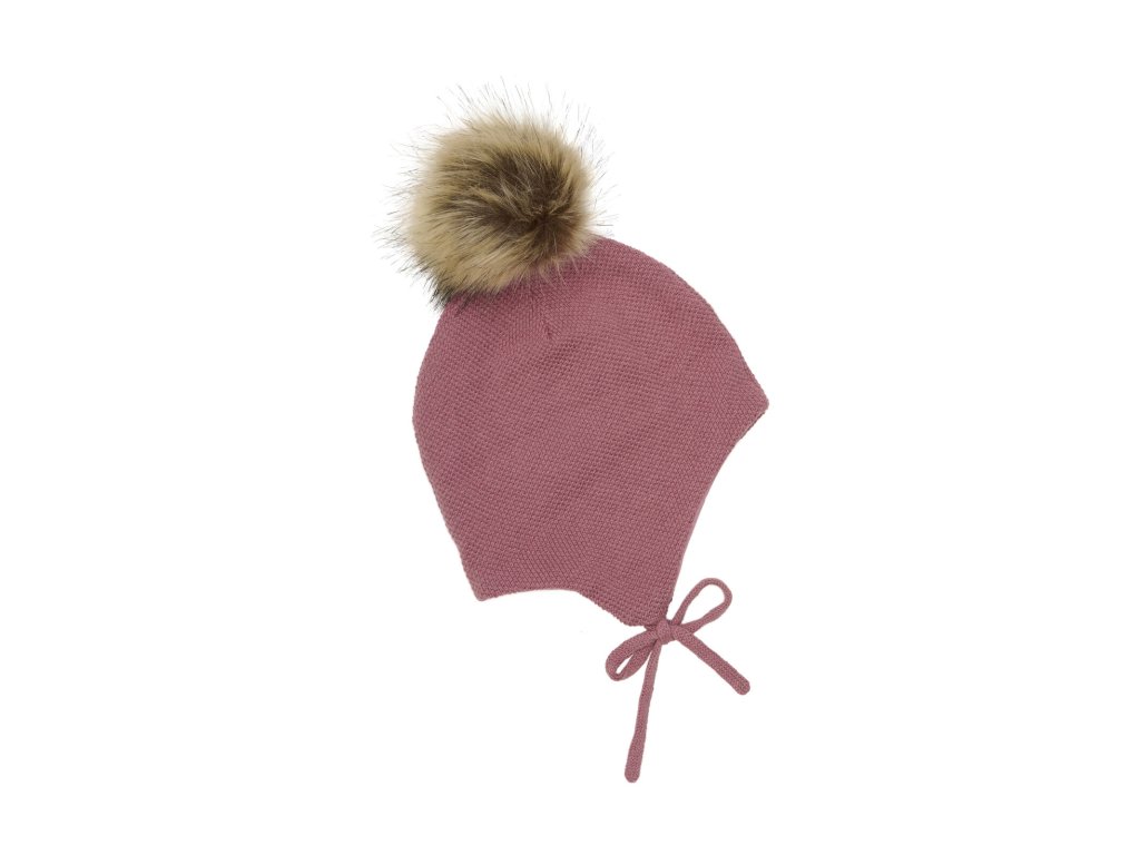 Minymo - Čepice na zavazování s odjímatelnou bambulí - Dusty Rose