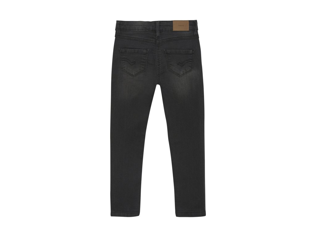 Velmi příjemné a pružné jeansy s knoflíky na stažení u pasu sednou i velmi hubeným dětem.