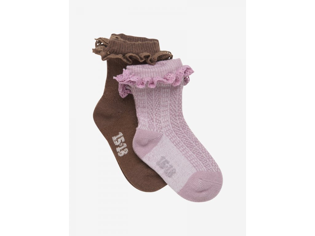 Minymo - Dívčí ponožky s krajkovým lemem - 2pack - Elderberry