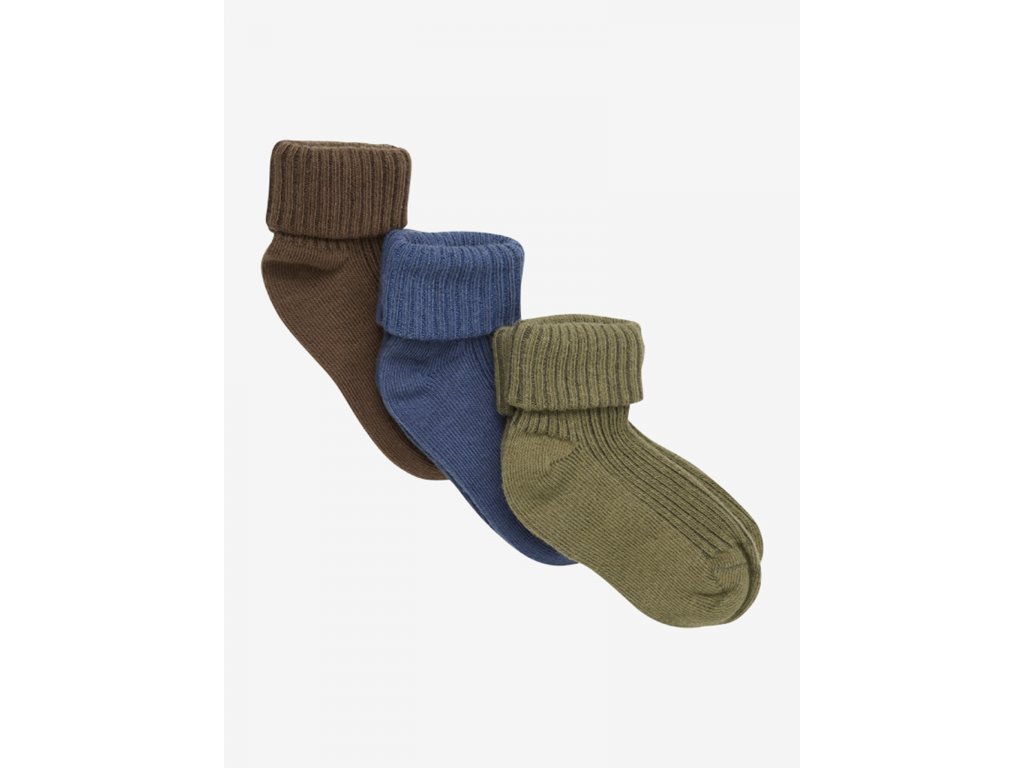 Minymo - Kojenecné žebrované ponožky - 3pack - Dark Olive
