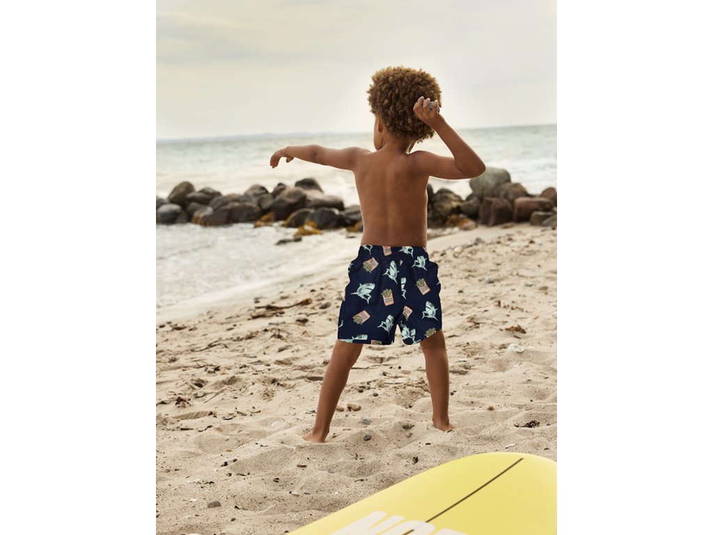 Jednobarevné koupací šortky pro chlapce od značky Minymo. Mají pružný pas s tkaničkami pro snadné přizpůsobení velikosti. Vyrobeny z recyklovaného mikrovlákna, které rychle schne.