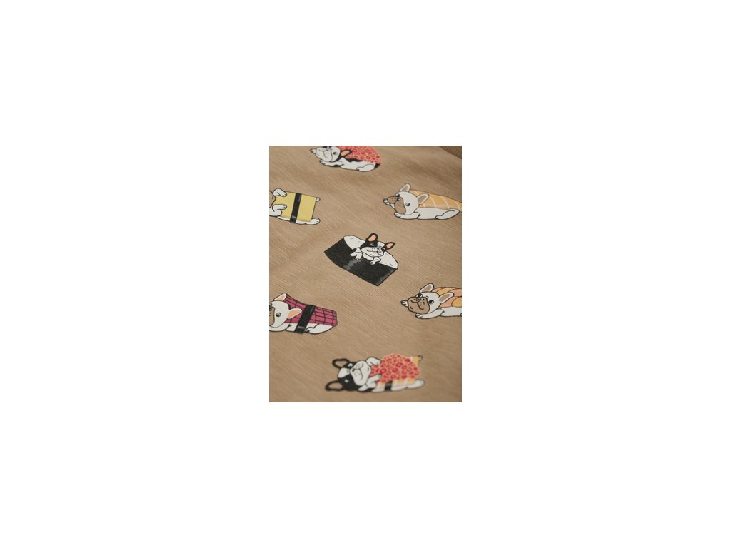 Krásné tričko s krátkým rukávem s potiskem sushi a buldočků.
