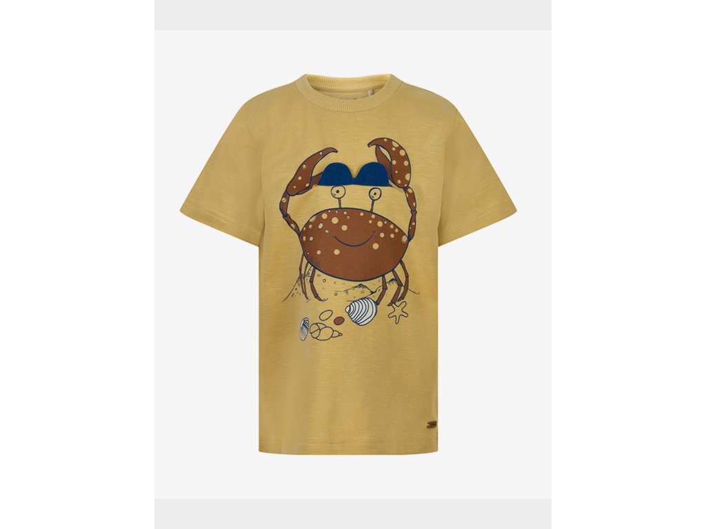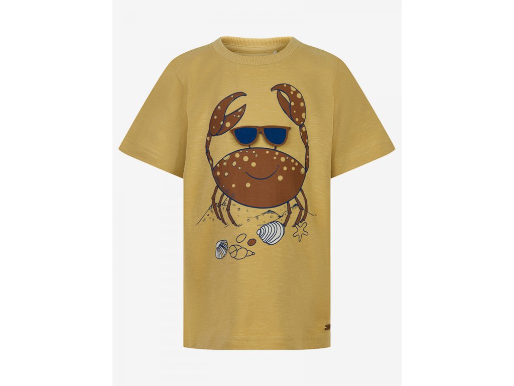 Skvělé jednobarevné tričko s krátkým rukávem od značky Minymo. Tričko má žebrování u krku a potisk kraba na přední straně se slunečními brýlemi, které lze zvednou. Je vyrobeno z velice příjemného materiálu.