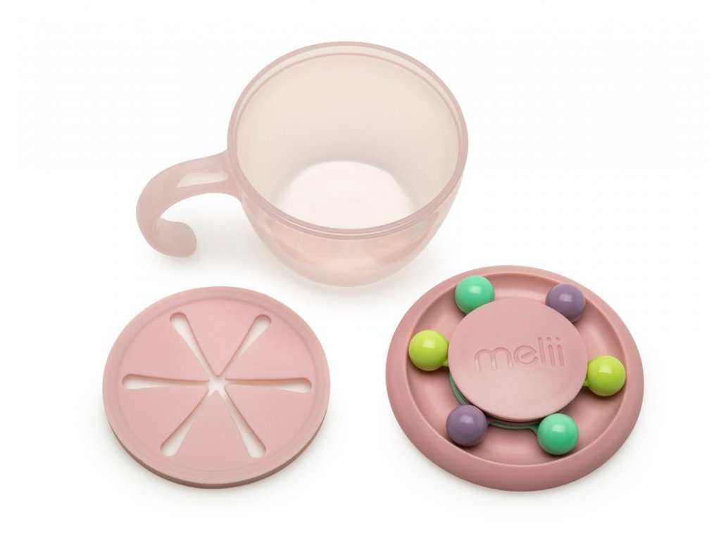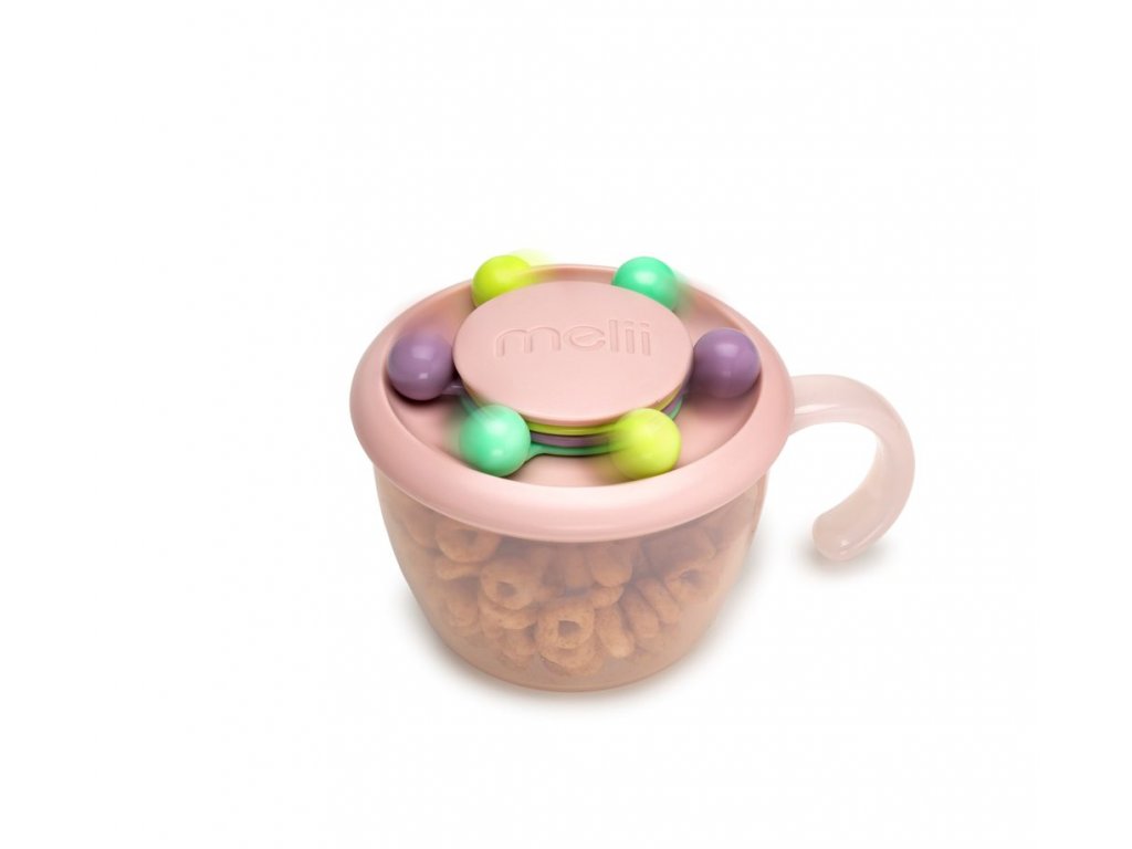 Vyladěná miska svačinu, která funguje i jako zábavná hračka pro malé neposedy! Vaše dítě se může bavit točením, počítáním a hraním si různobarevnými kuličkami připevněnými k nádobce. Rukojeť je navržená přesně pro malé ručičky a povzbuzuje malé děti k samostatnosti. Měkké a flexibilní víčko nedovolí křupkám, piškotům a drobnému ovoci, aby se rozkutáleli po podlaze i když se se Vaše dítě bude otáčet nádobou dnem vzhůru. Mistička má pro jistotu i druhé víčko, které udrží i drobečky a díky tomu i ideální i na výlety a cesty mimo domov. Miska bude od teď vaším skvělým pomocníkem doma i na cestách!