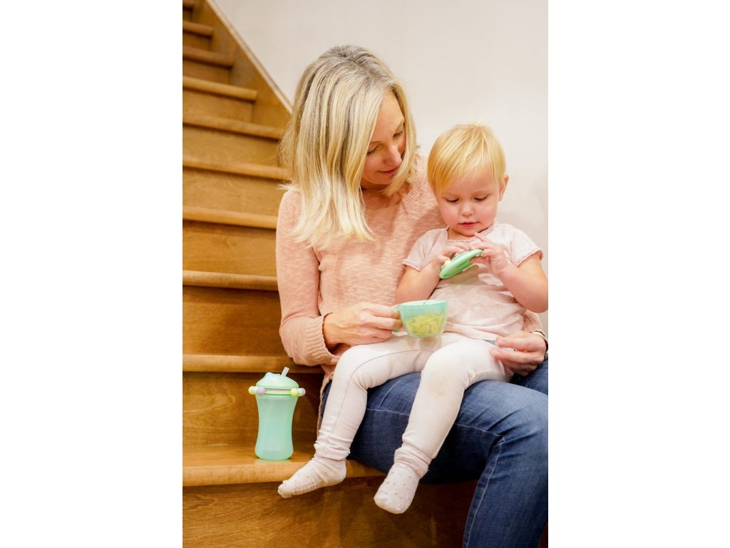 Vyladěná miska svačinu, která funguje i jako zábavná hračka pro malé neposedy! Vaše dítě se může bavit točením, počítáním a hraním si různobarevnými kuličkami připevněnými k nádobce. Rukojeť je navržená přesně pro malé ručičky a povzbuzuje malé děti k samostatnosti. Měkké a flexibilní víčko nedovolí křupkám, piškotům a drobnému ovoci, aby se rozkutáleli po podlaze i když se se Vaše dítě bude otáčet nádobou dnem vzhůru. Mistička má pro jistotu i druhé víčko, které udrží i drobečky a díky tomu i ideální i na výlety a cesty mimo domov. Miska bude od teď vaším skvělým pomocníkem doma i na cestách!