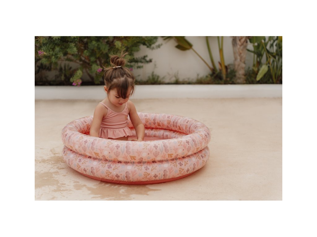 Nafukovací bazének pro nejmenší s krásným potiskem motivů ze života pod mořskou hladinou je ideální doplněk na zahradu během horkých letních dní. Pro snadné vylévání vody je bazének vybaven vypouštěcím ventilem. Bazének je součástí designové kolekce Little Dutch Ocean Dreams. Průměr: 80 cm Vhodné pro děti od 2 let.