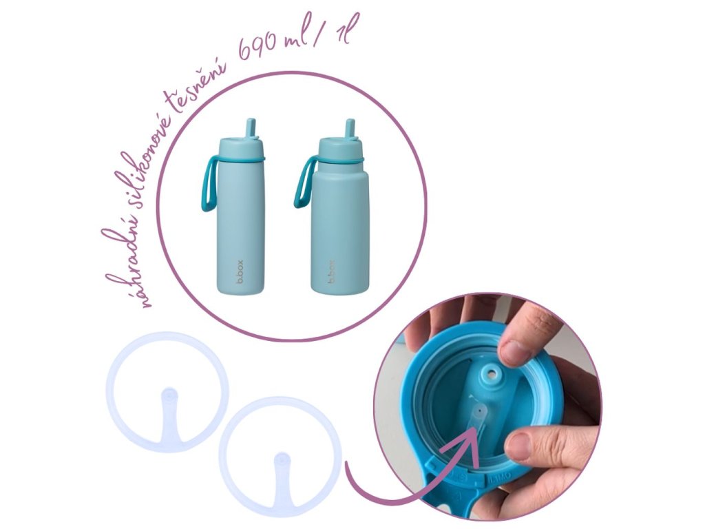 Náhradní silikonové těsnění je kompatibilní s oběma velikostmi nerezových termolahví b.box, s termolahví o objemu 1 litr i s termolahví o objemu 690 ml.