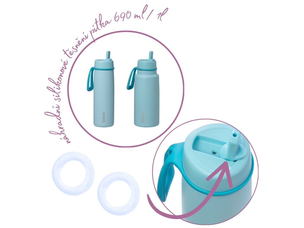 Malé silikonové těsnění je kompatibilní s oběma velikostmi nerezových termolahví b.box, s termolahví o objemu 1 litr i s termolahví o objemu 690 ml.