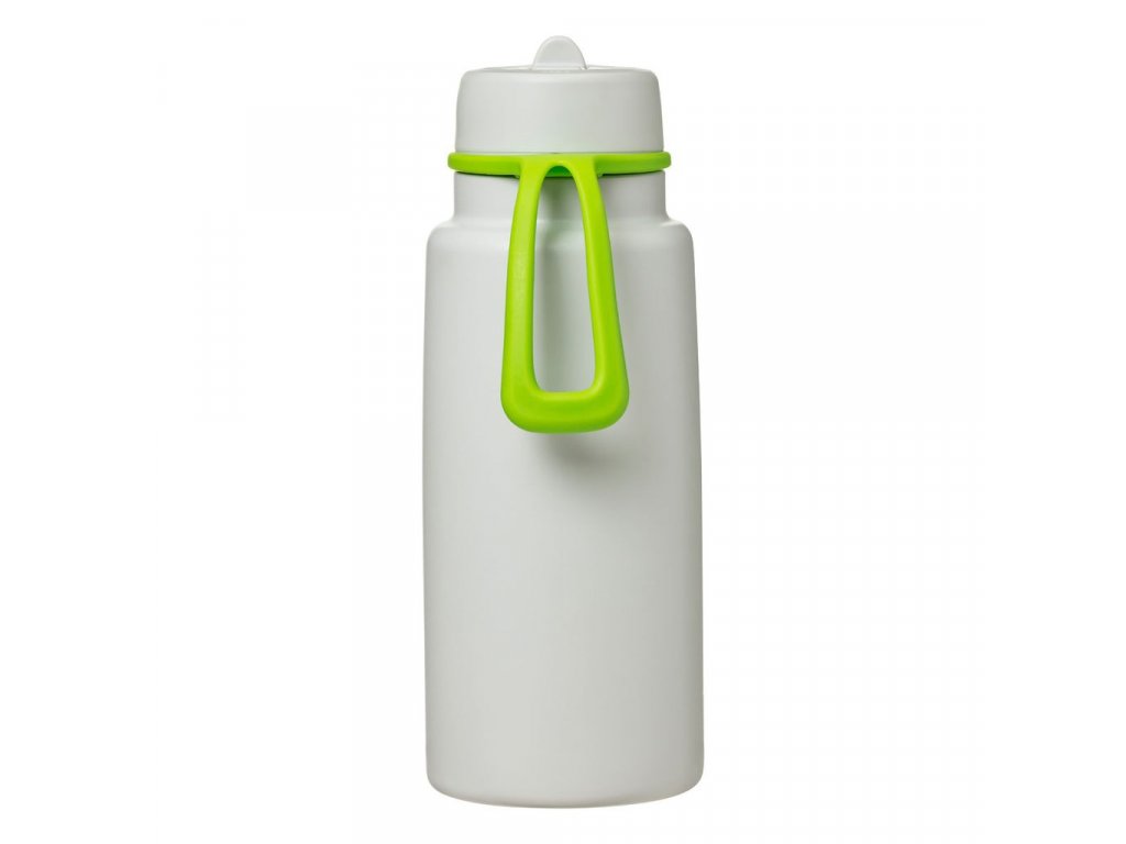 Materiál: lahev, brčko uvnitř lahve- nerezová ocel; víčko a vnější brčko - PP (polypropylen) a TPE (termoplastický elastomer); rukojeť - silikon