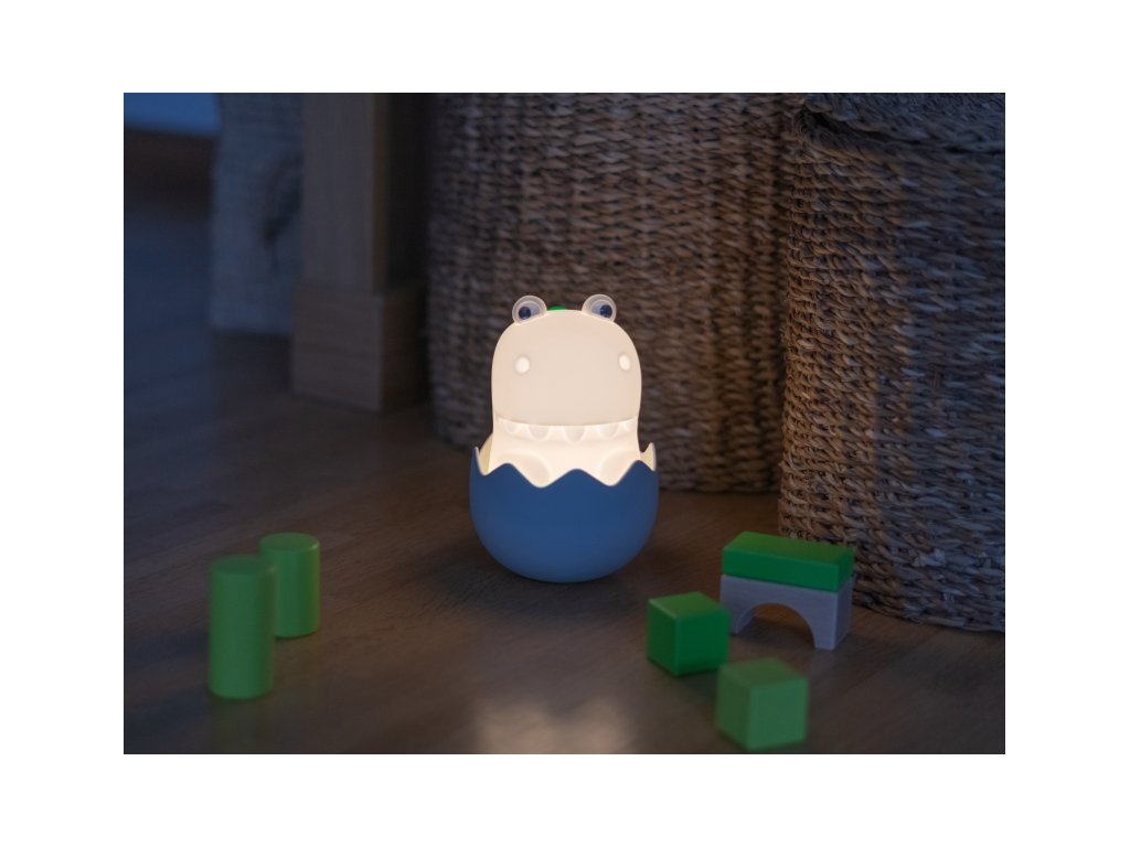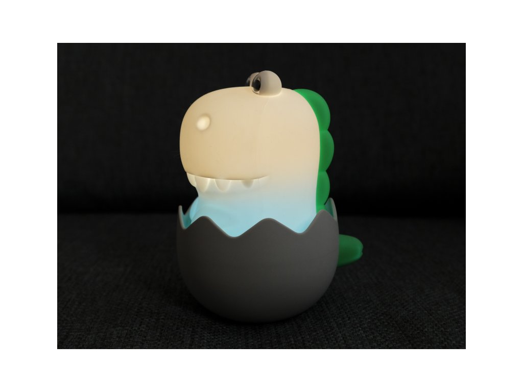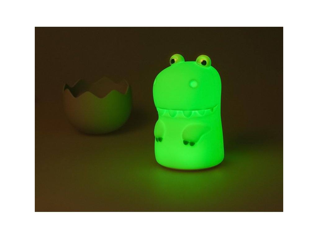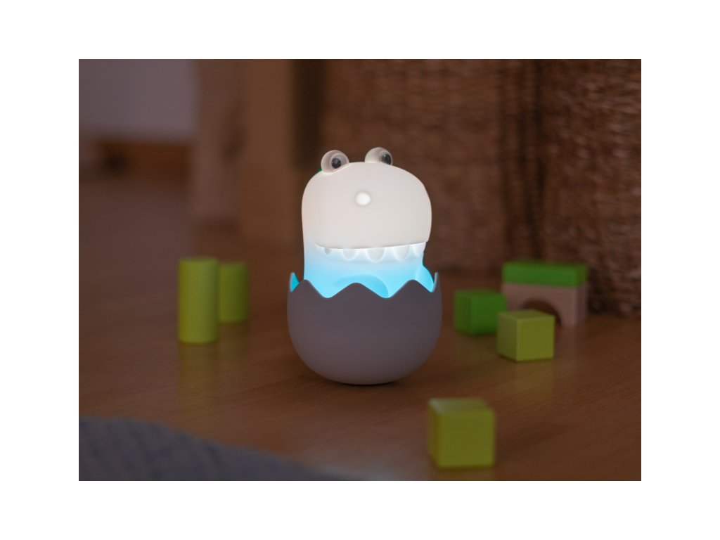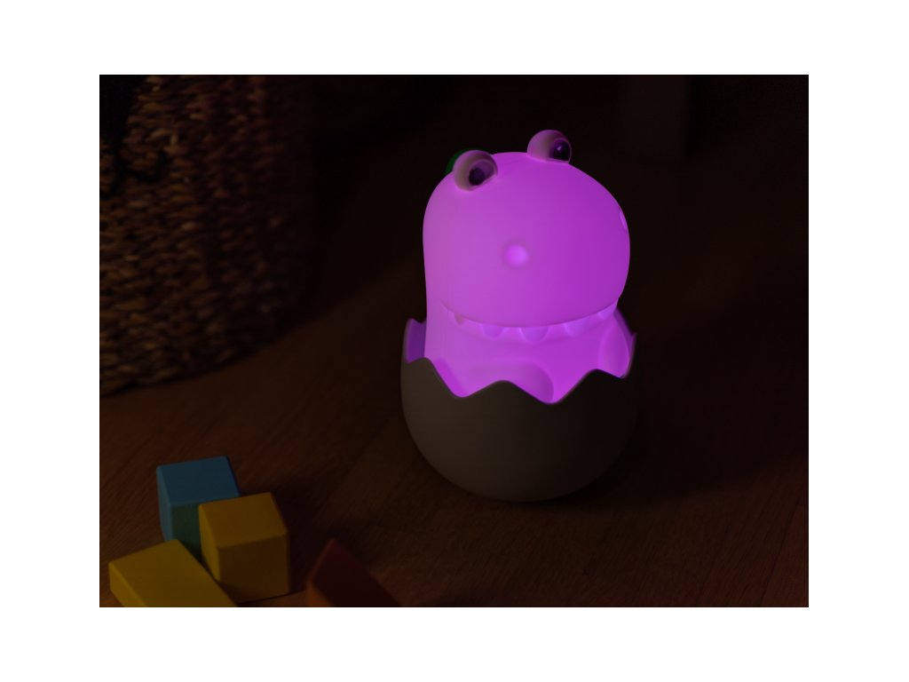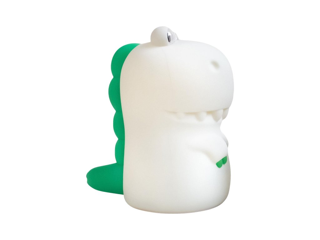 Noční světlo MegaLight Diggy Dino v podobě roztomilého dinoasaura poskytne vašemu dítěti pocit bezpečí a pomůže mu tak zajistit klidný spánek. Díky svému designu bude i krásnou dekorací v dětském pokoji. LED světlo s nabíjecí baterií na výběr teplé bílé světlo a 7 RGB barev regulace intenzity světla zvukový efekt dinosaura při dotyku (s možností vypnutí) snadné ovládání dotykem životnost baterie až 200 hodin při ztlumeném režimu, 5 hodin při maximálním jasu nabíjení s pomocí přiloženého USB-C kabelu testováno v souladu se směrnicemi o hračkách Složení: polykarbonát, silikon Rozměry: 100 x 115 x 145 mm Vhodné pro děti od 18 měsíců.