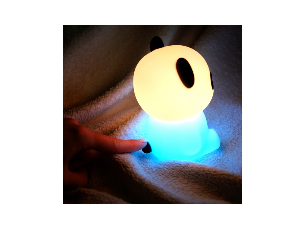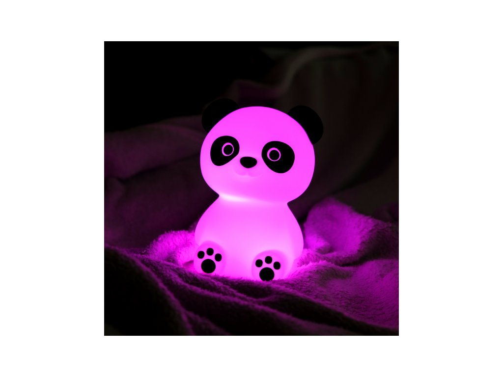 Noční světlo MegaLight Paddy Panda v podobě roztomilé pandy poskytne vašemu dítěti pocit bezpečí a pomůže mu tak zajistit klidný spánek. Díky svému designu bude i krásnou dekorací v dětském pokoji. LED světlo s nabíjecí baterií na výběr teplé bílé světlo a 7 RGB barev regulace intenzity světla časovač pro možnost vypnutí po 20, 40 nebo 60 minutách snadné ovládání dotykem životnost baterie až 200 hodin při ztlumeném režimu, 5 hodin při maximálním jasu nabíjení s pomocí přiloženého USB-C kabelu testováno v souladu se směrnicemi o hračkách Složení: polykarbonát, silikon Rozměry: 88 x 86 x 122 mm Vhodné pro děti od 18 měsíců.