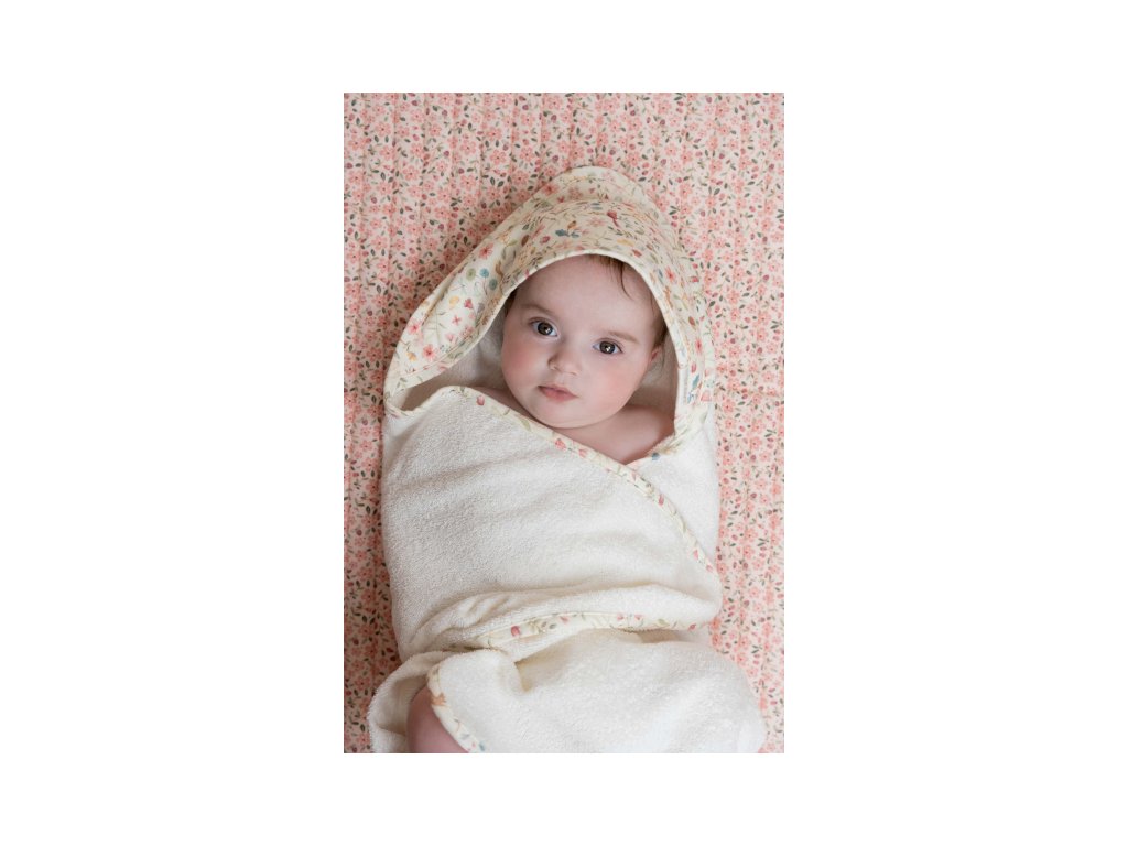 Měkká froté osuška s kapucí z jemné organické bavlny je ideální pro snadné a rychlé osušení a zabalení miminka po koupeli.