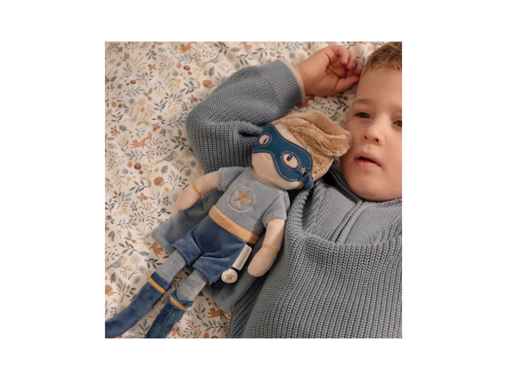 Originální plyšová panenka v podobě superhrdiny Jima z měkkého jemného materiálu je oblečená do krásného kostýmu superhrdiny s maskou.