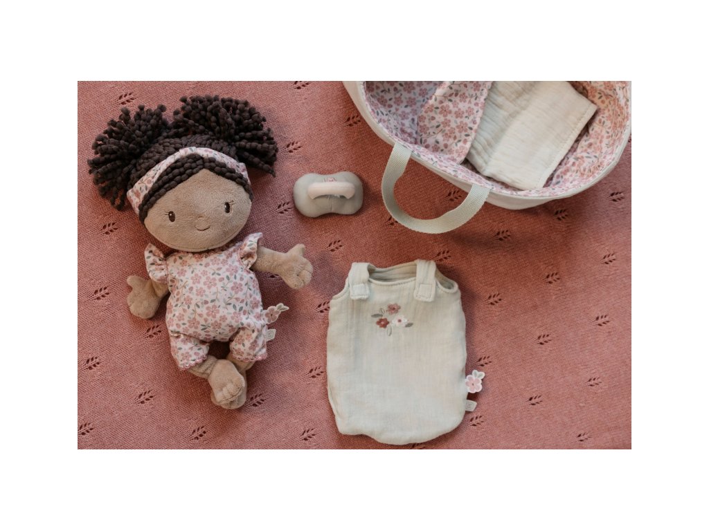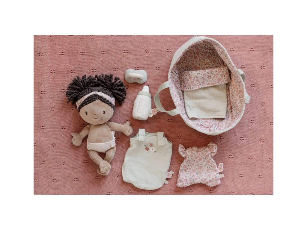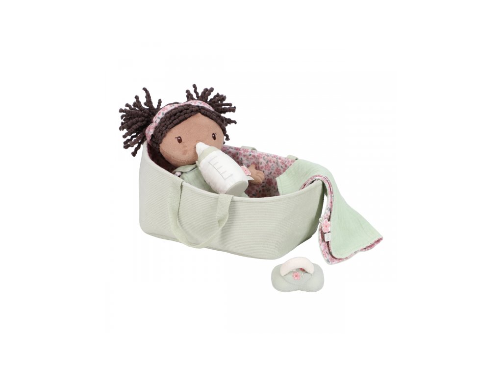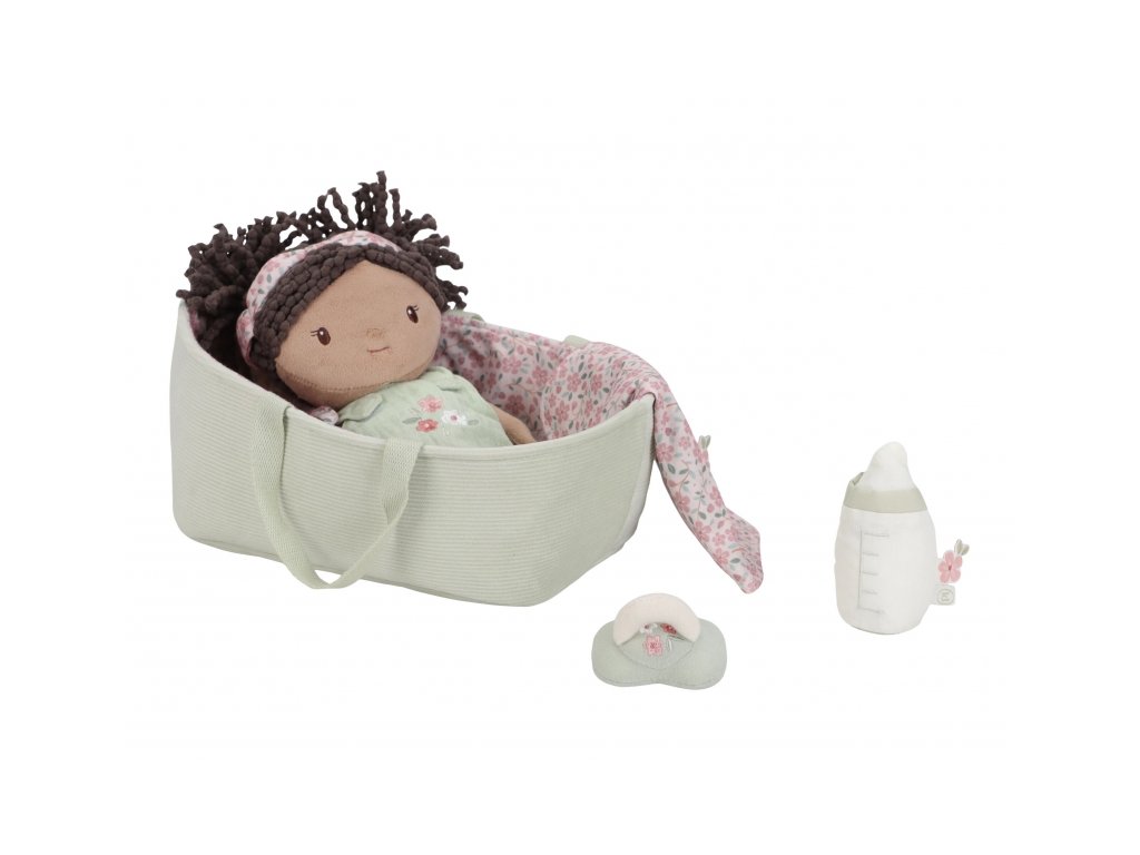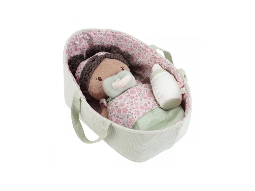 Něžná plyšová panenka Evi se chce mazlit a chovat a díky praktickému košíku na spaní si ji můžete vzít kamkoli s sebou.