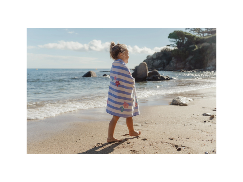 Měkká froté osuška z jemné organické bavlny s krásným potiskem je ideální pro snadné a rychlé osušení a zabalení dítěte po koupání v bazénu, v moři i doma po koupeli.