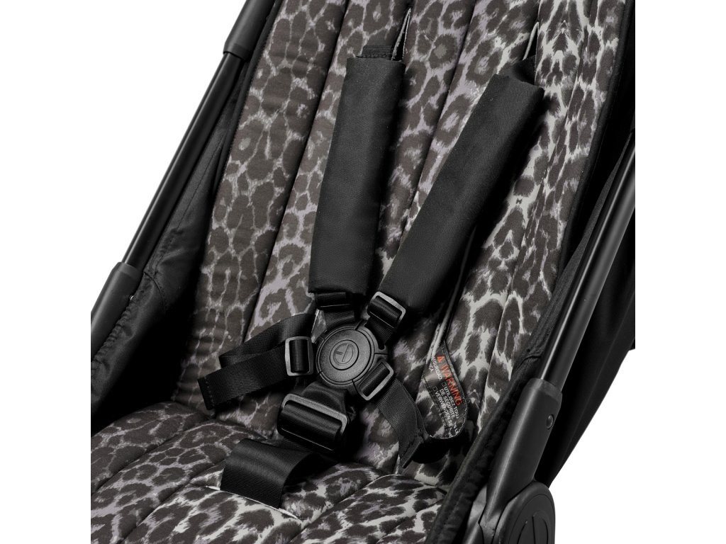 V polstrování jsou otvory pro 5-ti bodové bezpečnostní pásy kočárku.