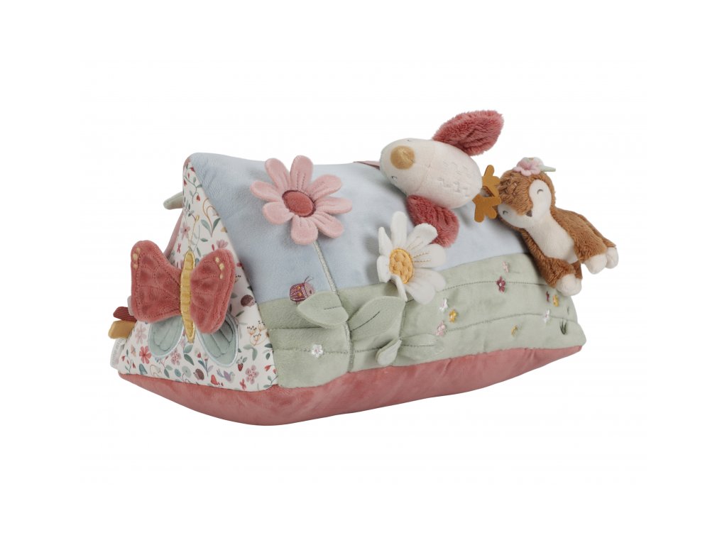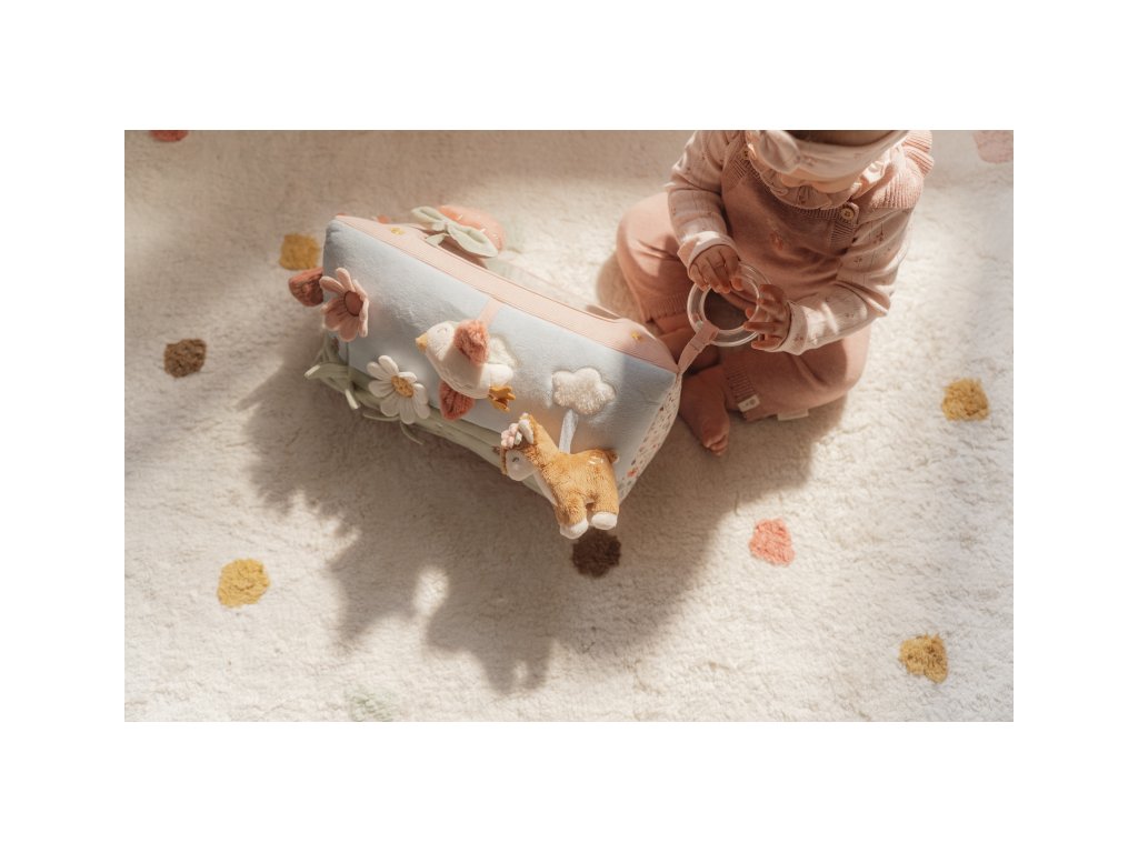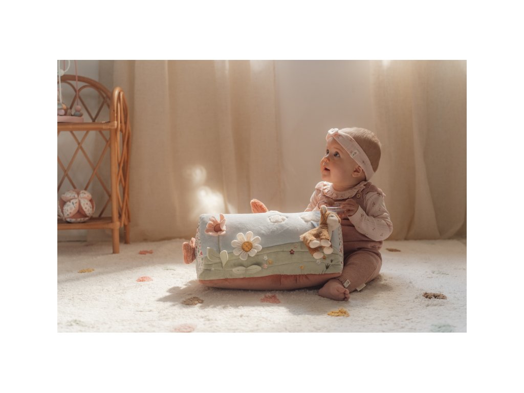 Polštářek z jemného, měkkého materiálu s krásnými motivy života na zahradě je speciálně navržený, aby podporoval hraní dítěte na bříšku. Hračky na polštářku i originální vyšívané aplikace lákají dítě ke zkoumání a pozorování. Každá strana polštářku je jiná, takže stačí polštářek otočit a nabídnout dítěti nové podněty k zabavení i rozvíjení jeho jednotlivých smyslů. Pro malého kojence, který tráví většinu dne i noci ležením na zádech, je důležité, aby trávil několikrát denně čas ležením na bříšku a takzvaným “pasením koníčků”. Poloha na bříšku přináší děťátku jiný pohled na svět a posiluje krční a zádové svaly, které mu později umožňují začít se přetáčet, lézt a sedět bez opory. Polštářek je součástí designové kolekce hraček Little Dutch Fairy Garden inspirované životem na zahradě. Rozměry: 34 x 18 x 18 cm Vhodné pro děti od narození.