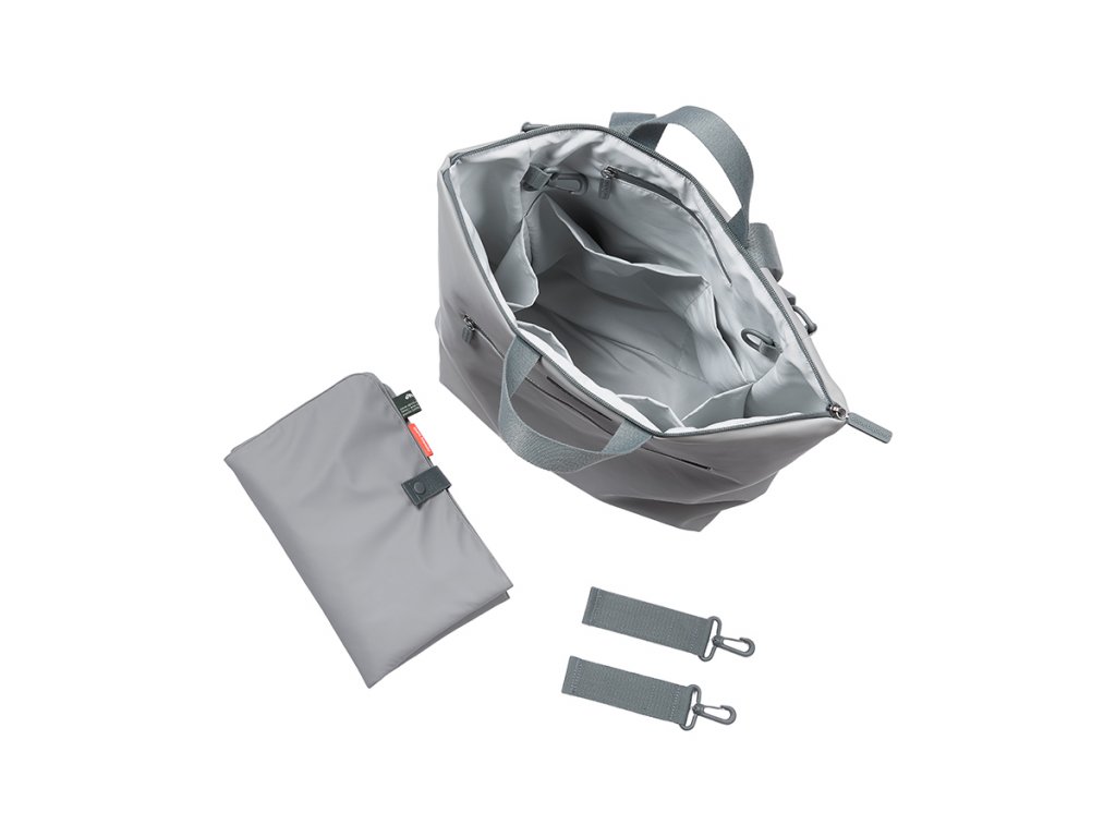 Součástí balení je praktická skládací přebalovací podložka s voděodolným povrchem a dva háčky na upevnění batohu na kočárek. Vodotěsné zipy i povrch činí batoh odolným vůči povětrnostním vlivům. Nastavitelné ramenní a hrudní popruhy usnadňují nošení batohu.
