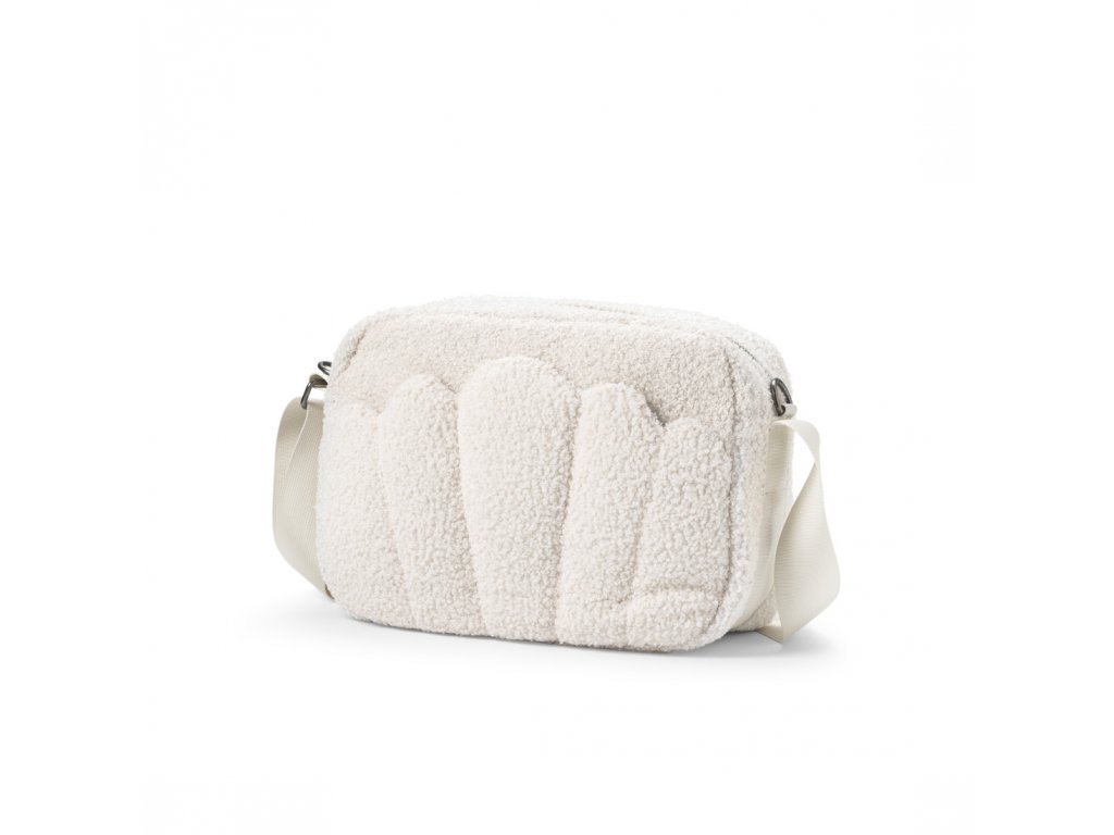 Přebalovací taška z bílého teddy materiálu má spoustu kapes, na mobil, klíče, pleny, vlhčené ubrousky a součástí tašky je přebalovací tašky je i přebalovací podložka a úchyty na kočárek.