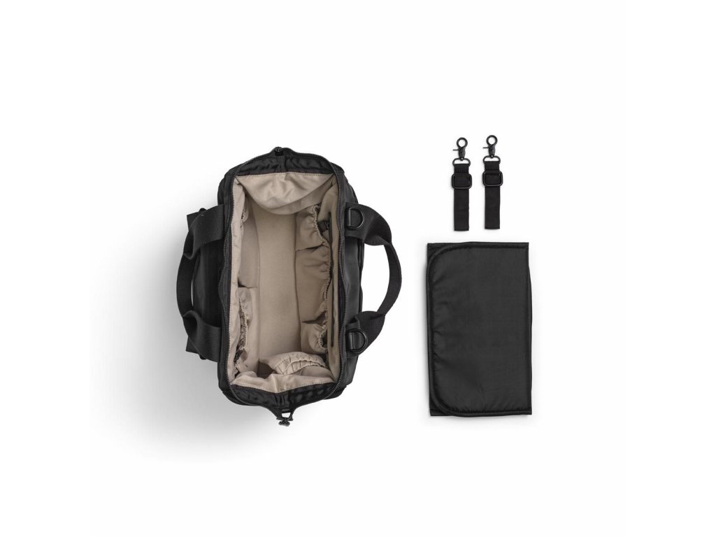 Moderní a praktická taška, do které ukryjete nejen všechny potřeby pro děti, ale i vaše osobní věci. Tašku budete ráda používat i při jiných příležitostech. Je vyrobena z kvalitního materiálu. Taška má dlouhý popruh i přídavné popruhy k připnutí na madlo kočárku. Součástí je měkká přebalovací podložka. Kapsy jsou navržené pro uložení plen, ubrousků, mobilního telefonu, laptopu atd. V tašce je termo kapsa na lahvičku pro udržení teploty nápoje. Taška je dostatečně velká, aby se do ní vešlo všechno potřebné. Taška má zapínání na zip s kovovým rámem, díky kterému drží otevřená, aby bylo přebalování ještě snadnější.