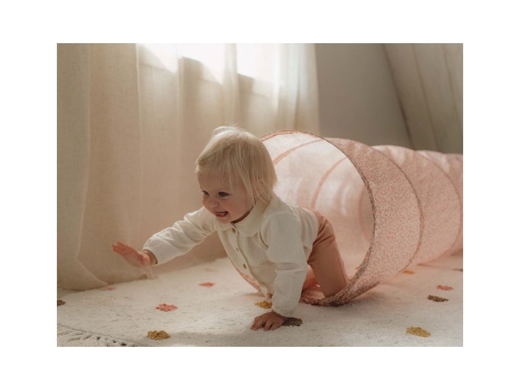 Klasický hrací tunel s krásným květinovým potiskem je vhodný pro hraní doma i venku. Tunel se snadno skládá i rozkládá. Když jej nepoužíváte, jednoduše jej složíte do plochého tvaru do tašky, která je součástí balení. Prolézací tunel poskytuje bezpečné prostředí pro cvičení a zkoumání, je skvělý pro rozvoj hrubé motoriky i jednotlivých smyslů vašeho batolete. Tunel je součástí designové kolekce hraček a doplňků Little Dutch Fairy Garden inspirované životem na zahradě. Složení: 100% polyester Rozměry: 180 x 46 cm Vhodné pro děti od 12 měsíců.