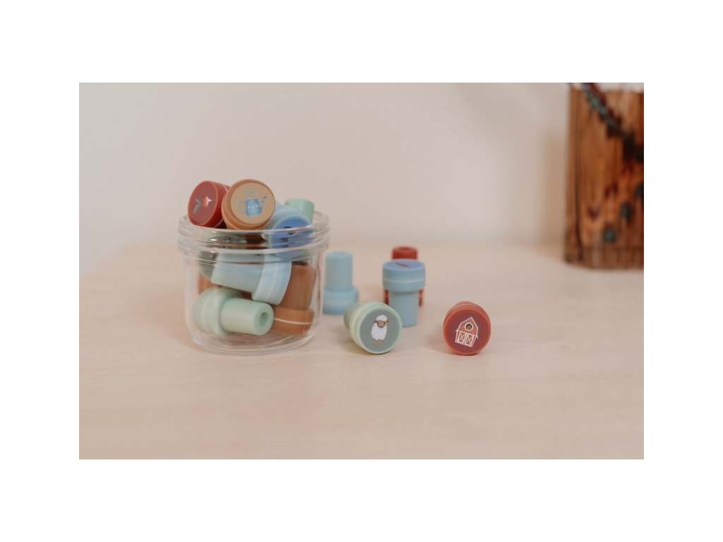 Sada samobarvicích razítek s roztomilými motivy ze života na farmě včetně ovečky, kuřátka, traktoru apod. Razítka jsou samobarvicí, takže jsou ihned připravená k použití! Razítka představují snadný a zábavný způsob, jak stimulovat dětskou kreativitu a zároveň rozvíjet jejich jemné motorické dovednosti. Razítka jsou součástí designové kolekce hraček a doplňků Little Dutch Farma. Sada obsahuje 16 razítek. Rozměry balení: 15,5 x 13 x 3,8 cm Vhodné pro děti od 3 let.