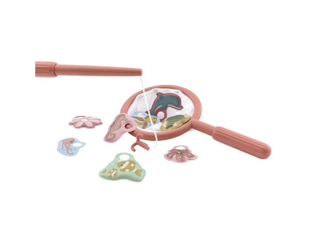 Obsahuje rybářský prut, síťku a osm plovoucích figurek mořských živočichů a rostlin, které děti mohou během koupání lovit z vody.